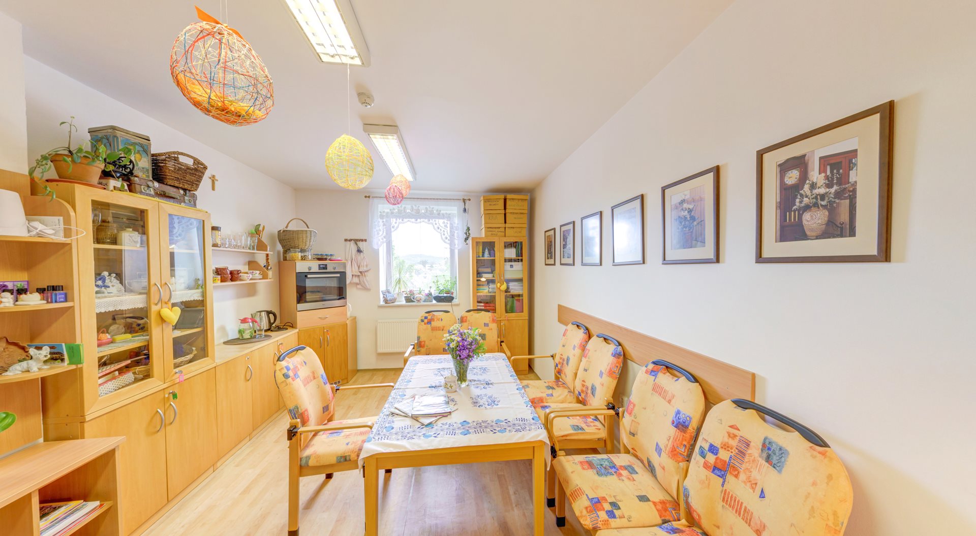 Vytváříme podmínky pro aktivní prožívání volného času. Uživatelé se mohou účastnit na základě svého zájmu různých individuálních a společných aktivit - tzv. "reminiscenci" (vzpomínání např. nad dobovými fotografiemi), pečení moučníků nejen pro oslavence na denní místnosti, aromapéči, kulturní vystoupení, bohoslužby, promítání filmů, výlety do blízkého okolí, dále canisterapie, zooterapie (uživatelé mohou pečovat o domovskou andulku či králíka), muzikoterapie a výroba drobných předmětů z keramické dílny. Od jara do podzimu využíváme zahradu s altánem, posezení pod pergolou u domova s výhledem na kostel a krajinu. Zahrada je také využívána i pro aktivní činnost - práce na vyvýšeném záhonu, vysazování květin, práce s bylinkami.