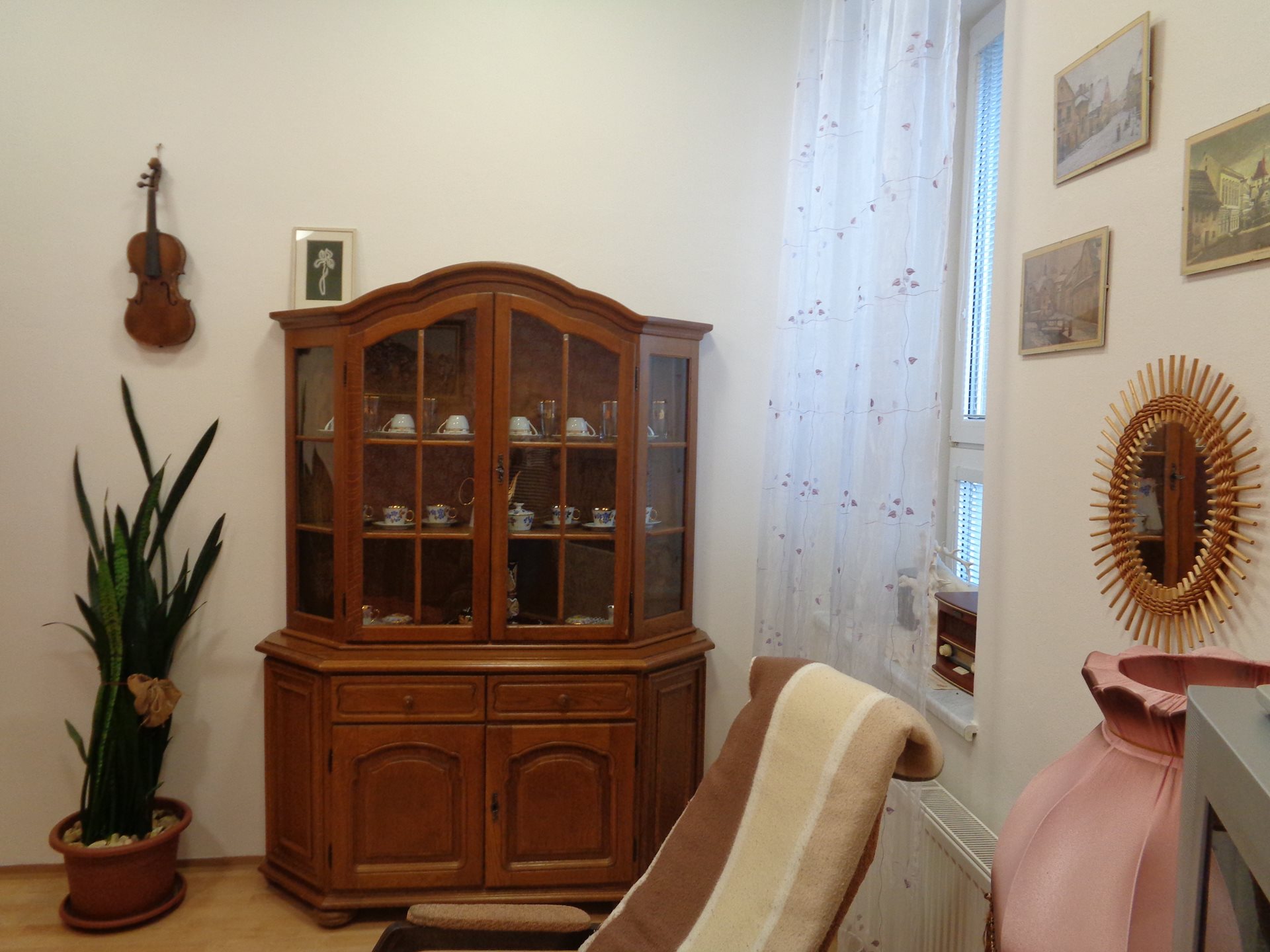 Poslech gramofonu u oblíbeného nápoje v parádním pokojíku.