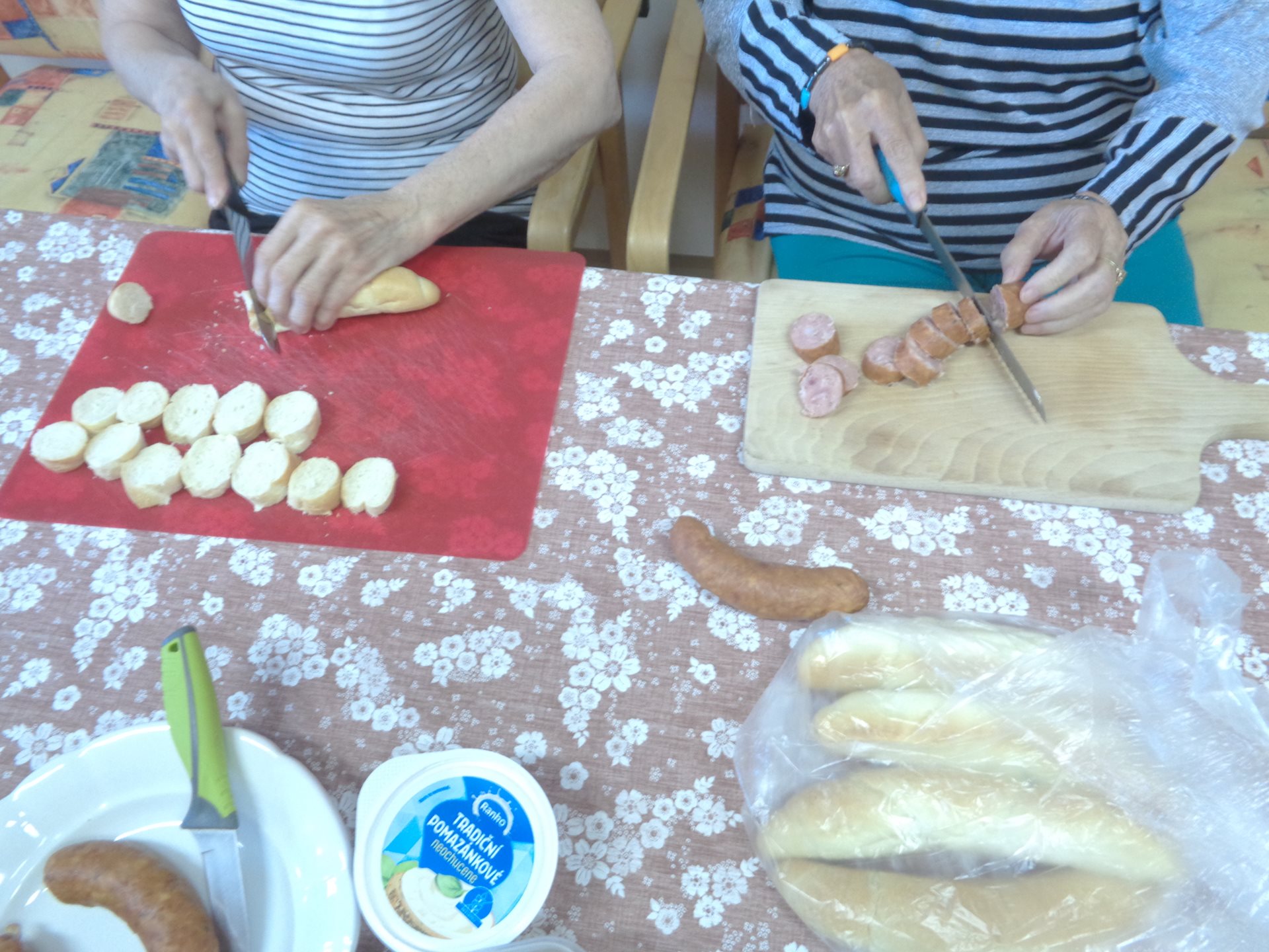 Příprava občerstvení na oslavu jubilantů a oslava srpnových jubilantů.