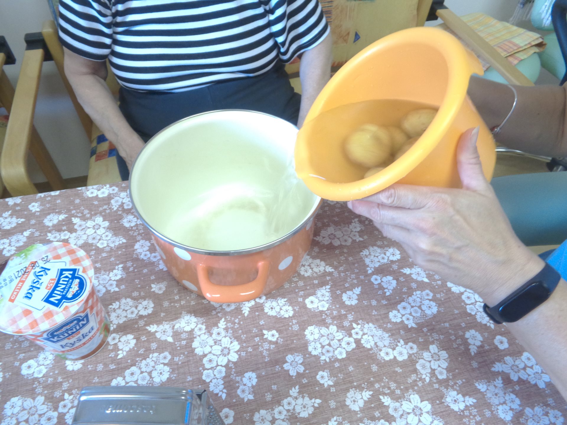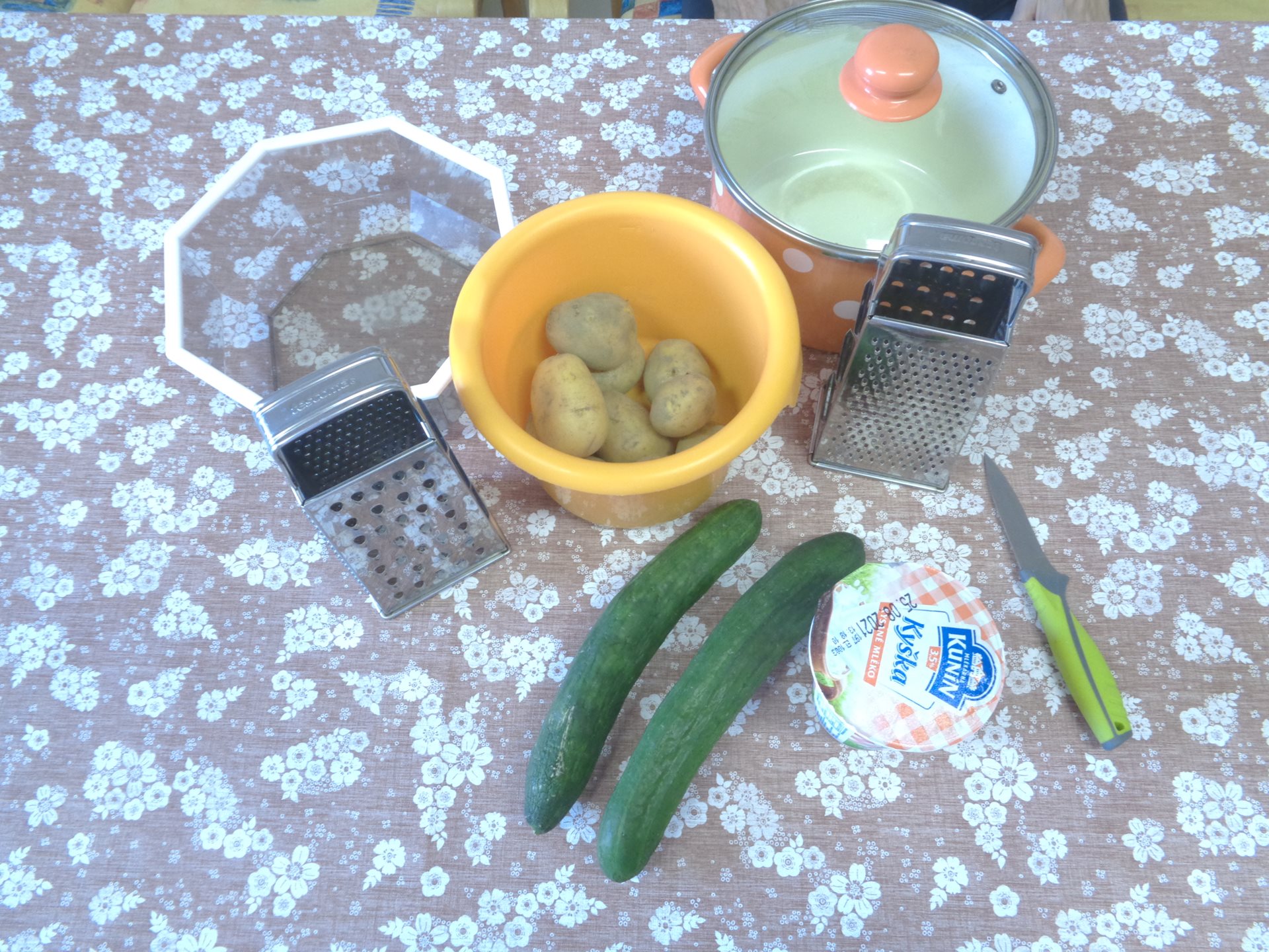 Příprava odpolední svačinky - "Brambory na loupačku s okurky a kyškou".