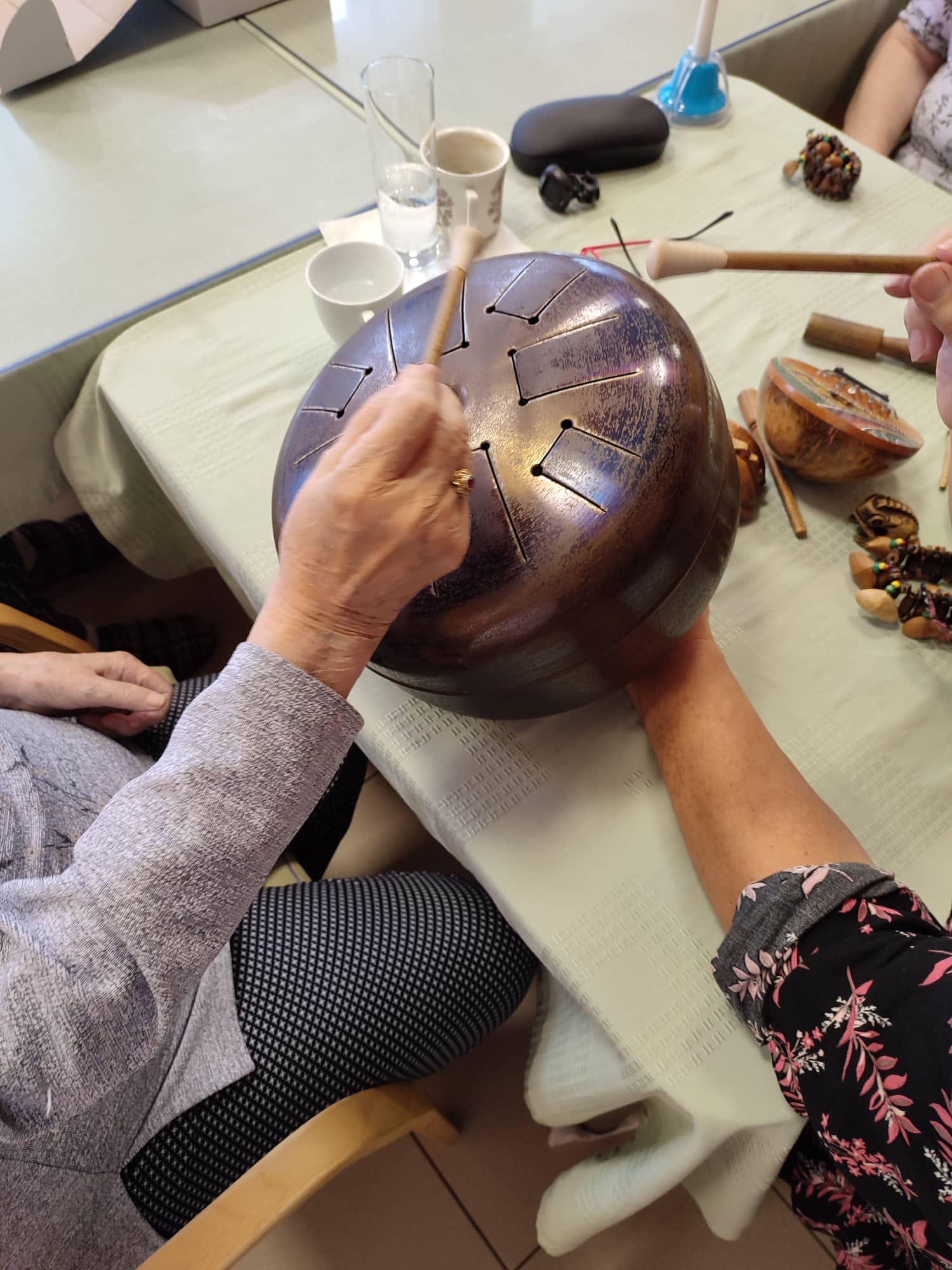 1 x za 14 dní se pravidelně naši uživatelé setkávají s muzikoterapeutkou paní Mösnerovou z Nového Malína.