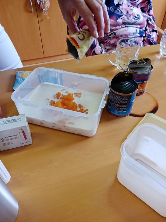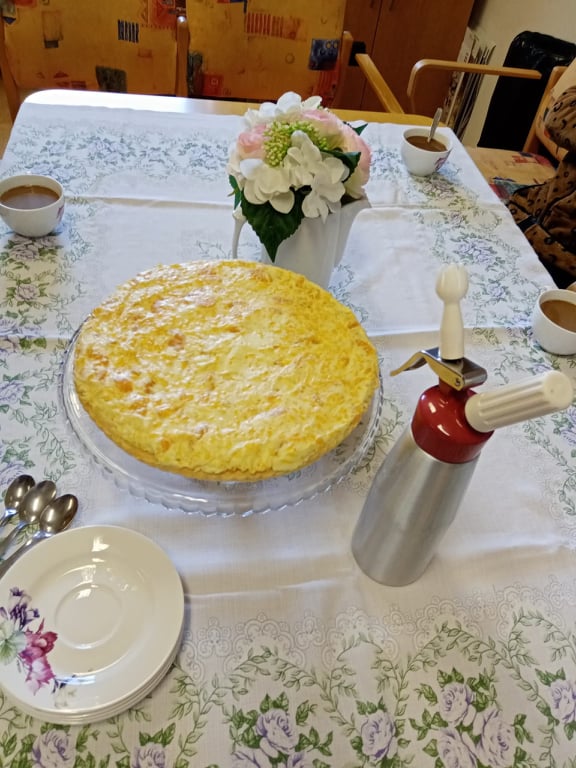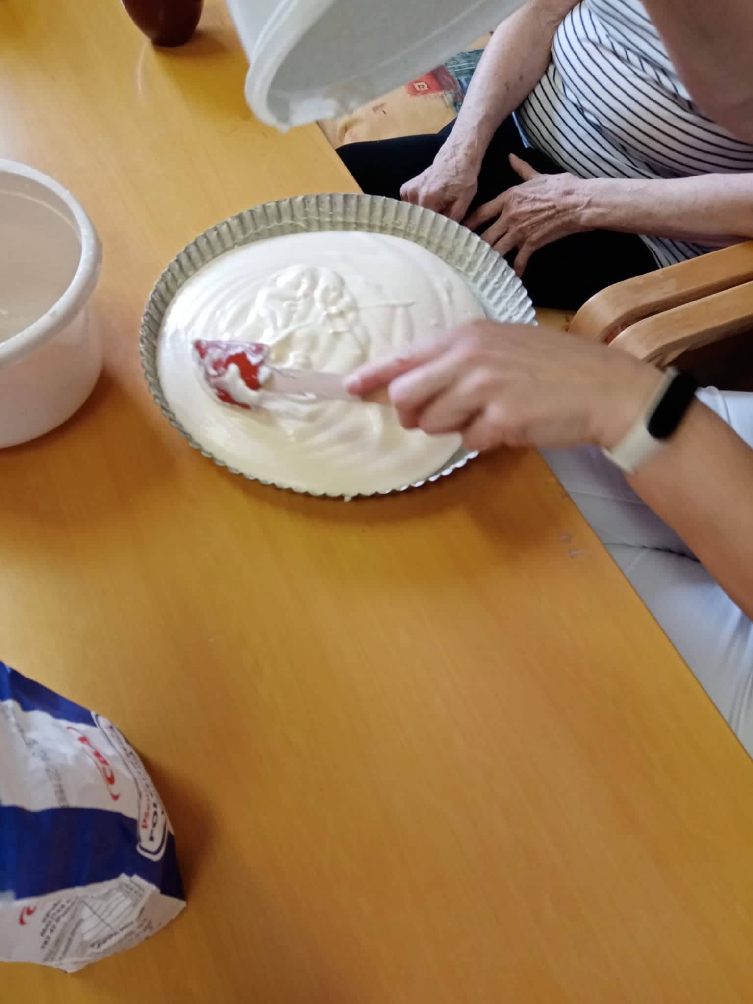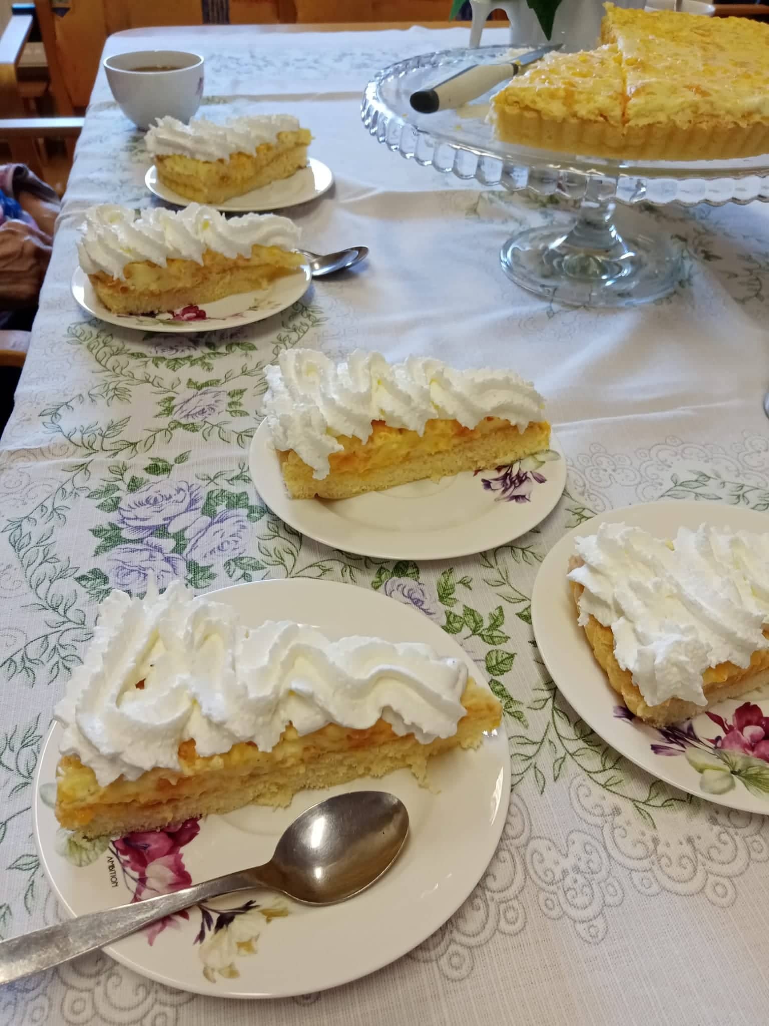 Pečení - třepaný koláč s ovocem a šlehačkou.