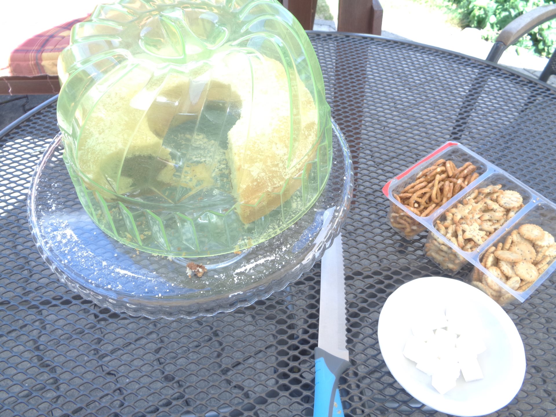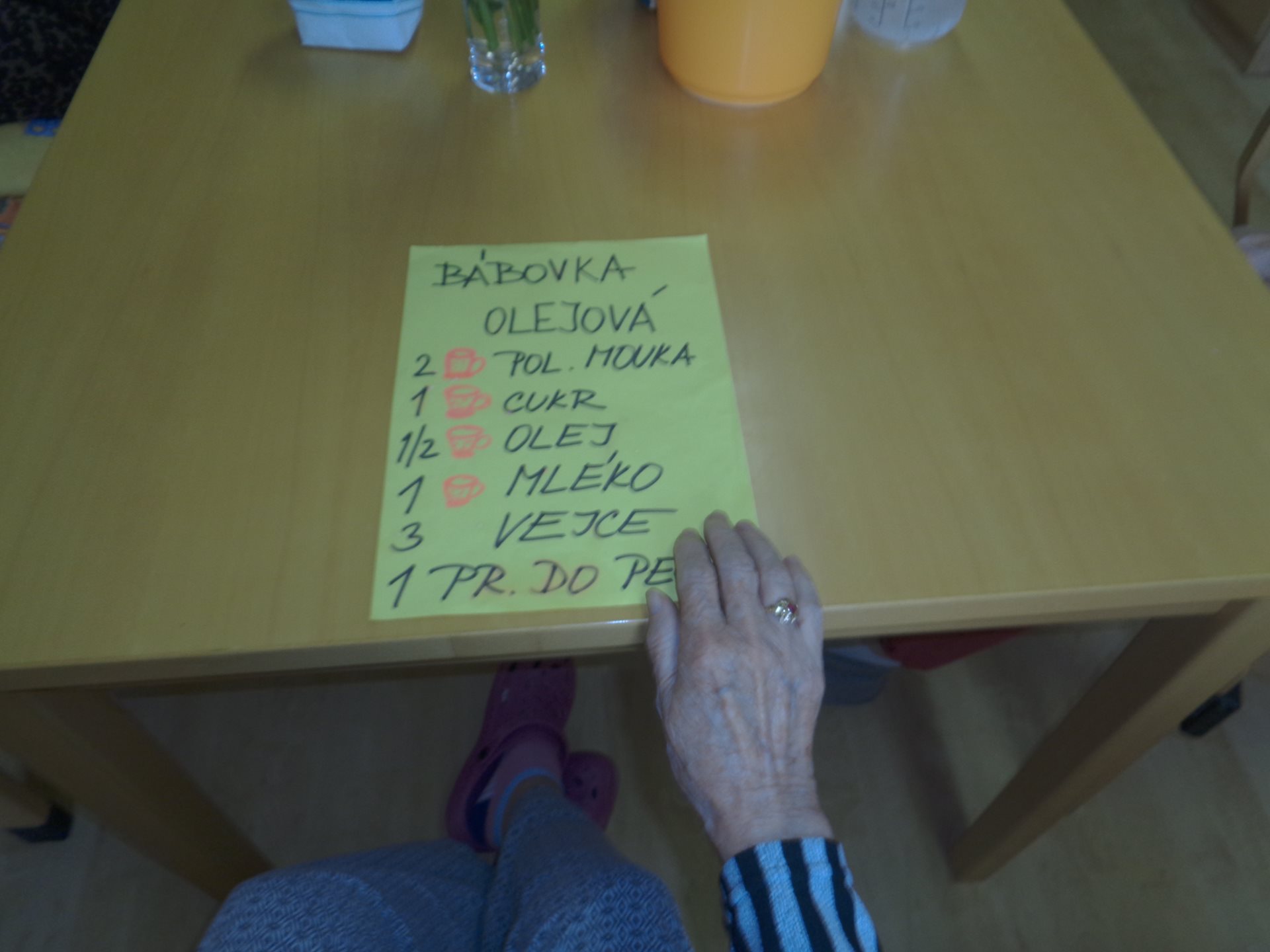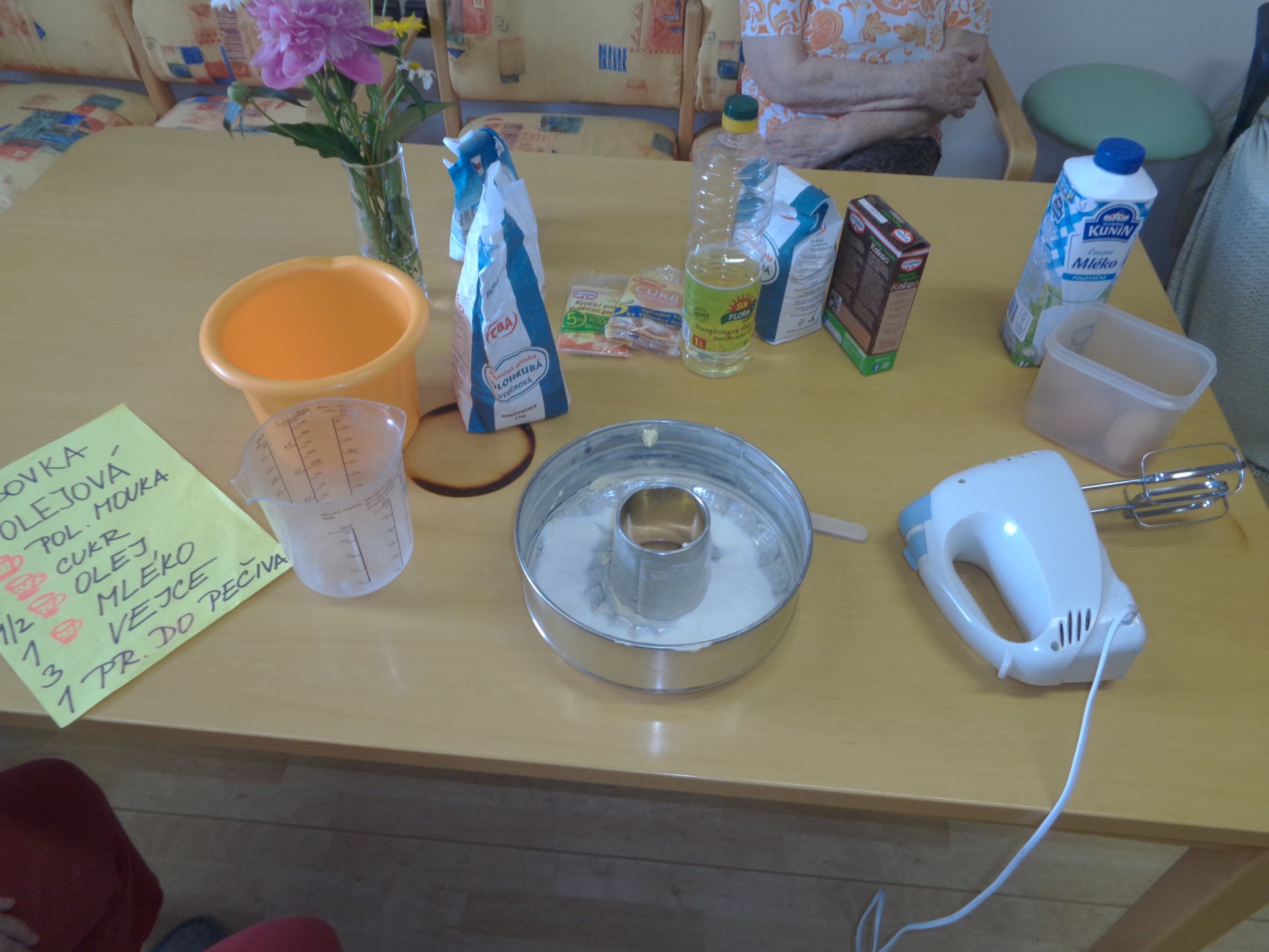 Příprava na pečení a pečení bábovky na přátelské posezení se seniory z DS Štíty na zahradě domova v