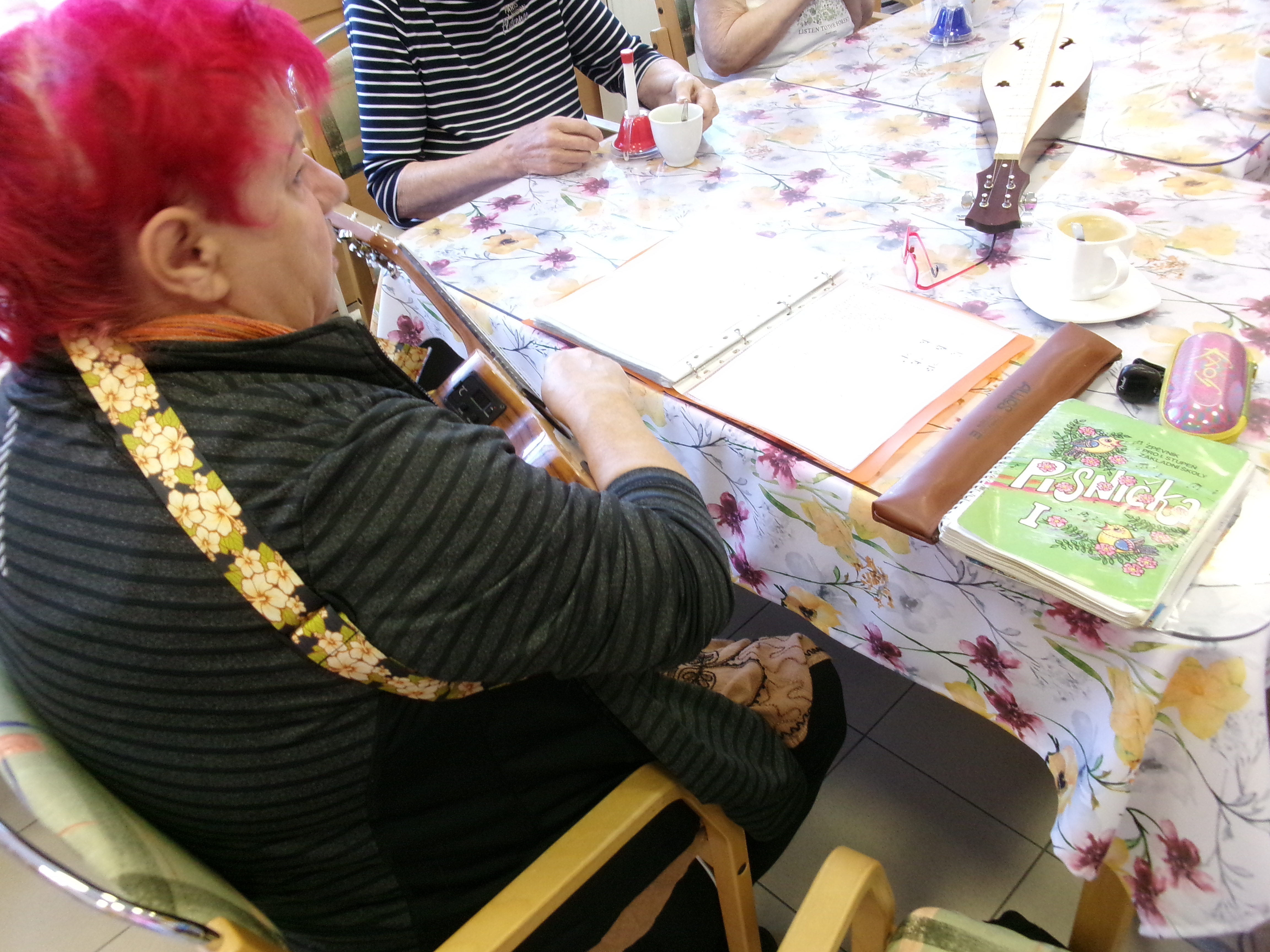 Květnová muzikoterapie s uživateli s paní Mösnerovou "Bobinou"