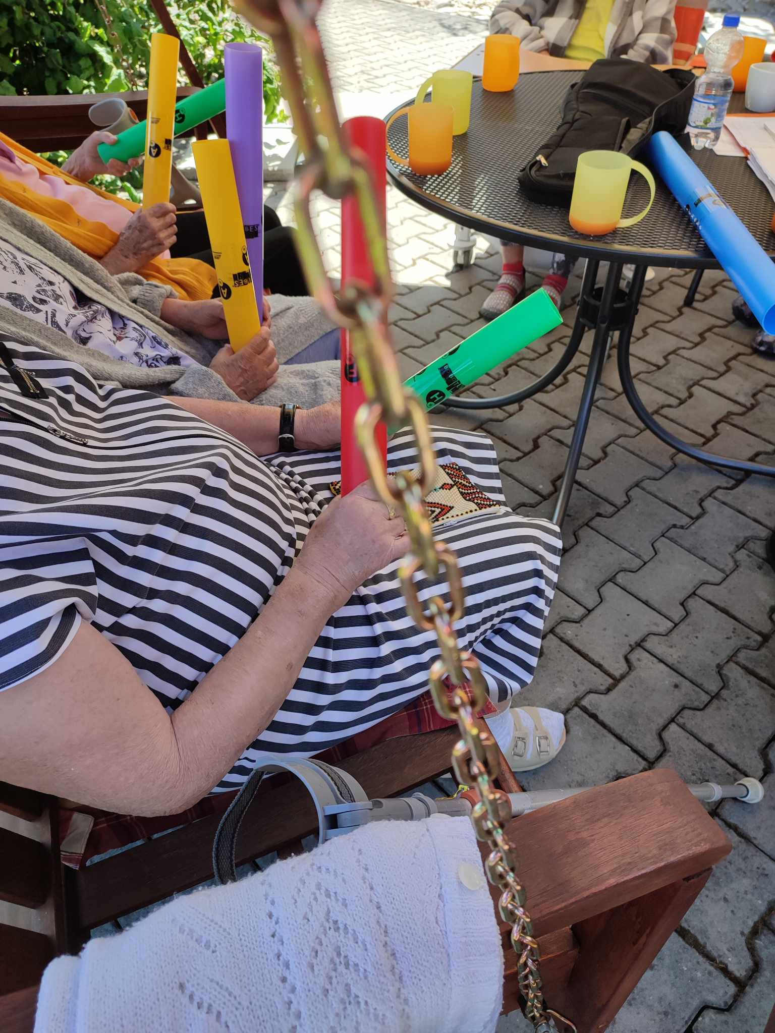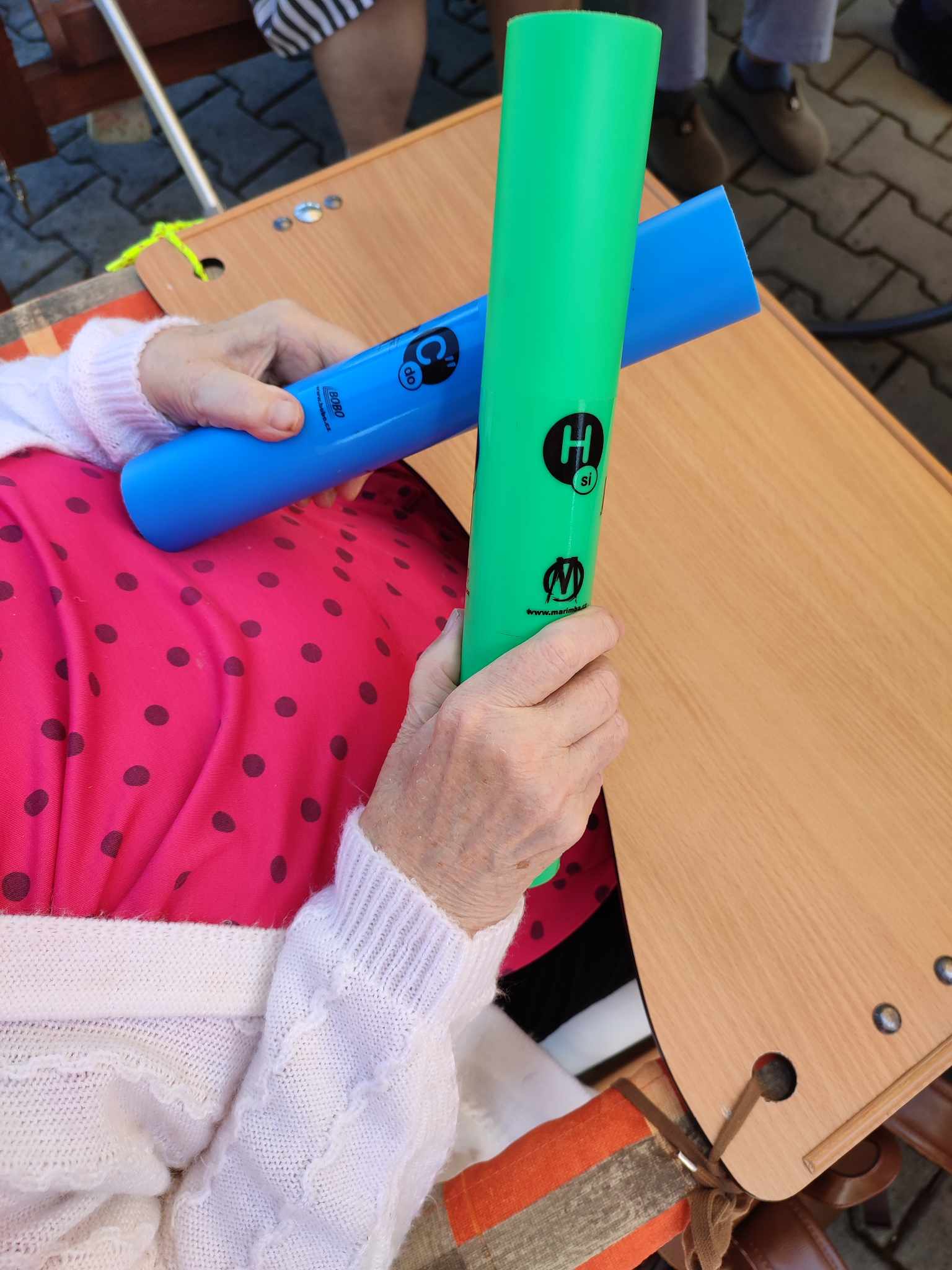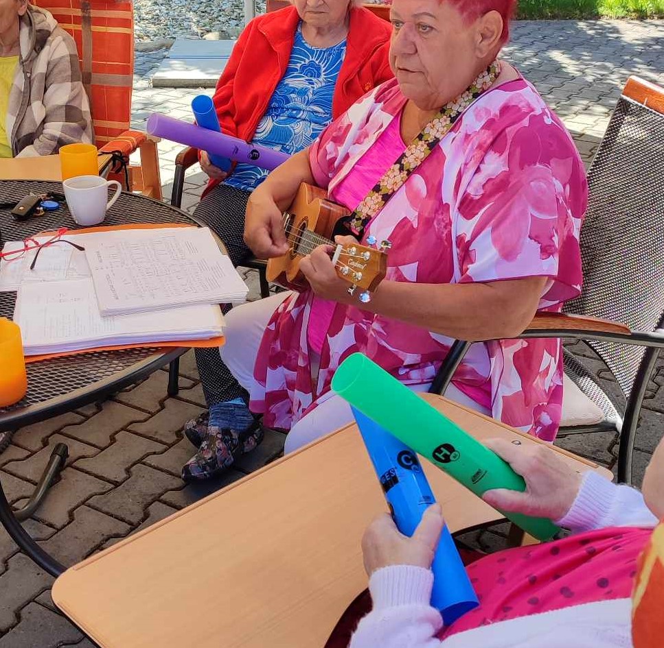 Muzikoterapie s uživateli s paní Mösnerovou "Bobinou"