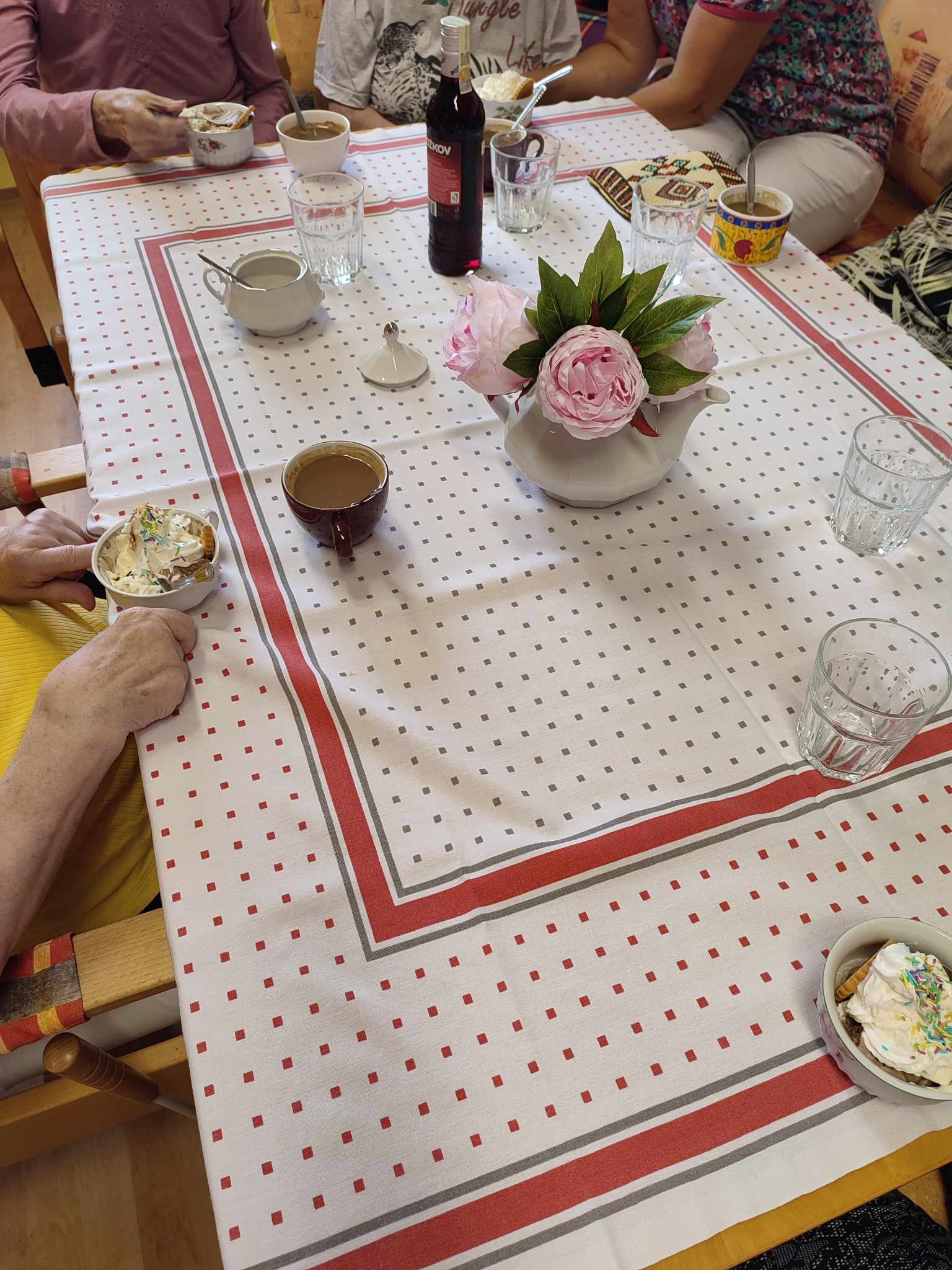 Každý měsíc probíhá společná oslava jubilantů a svátků na denní místnosti na žlutém patře.