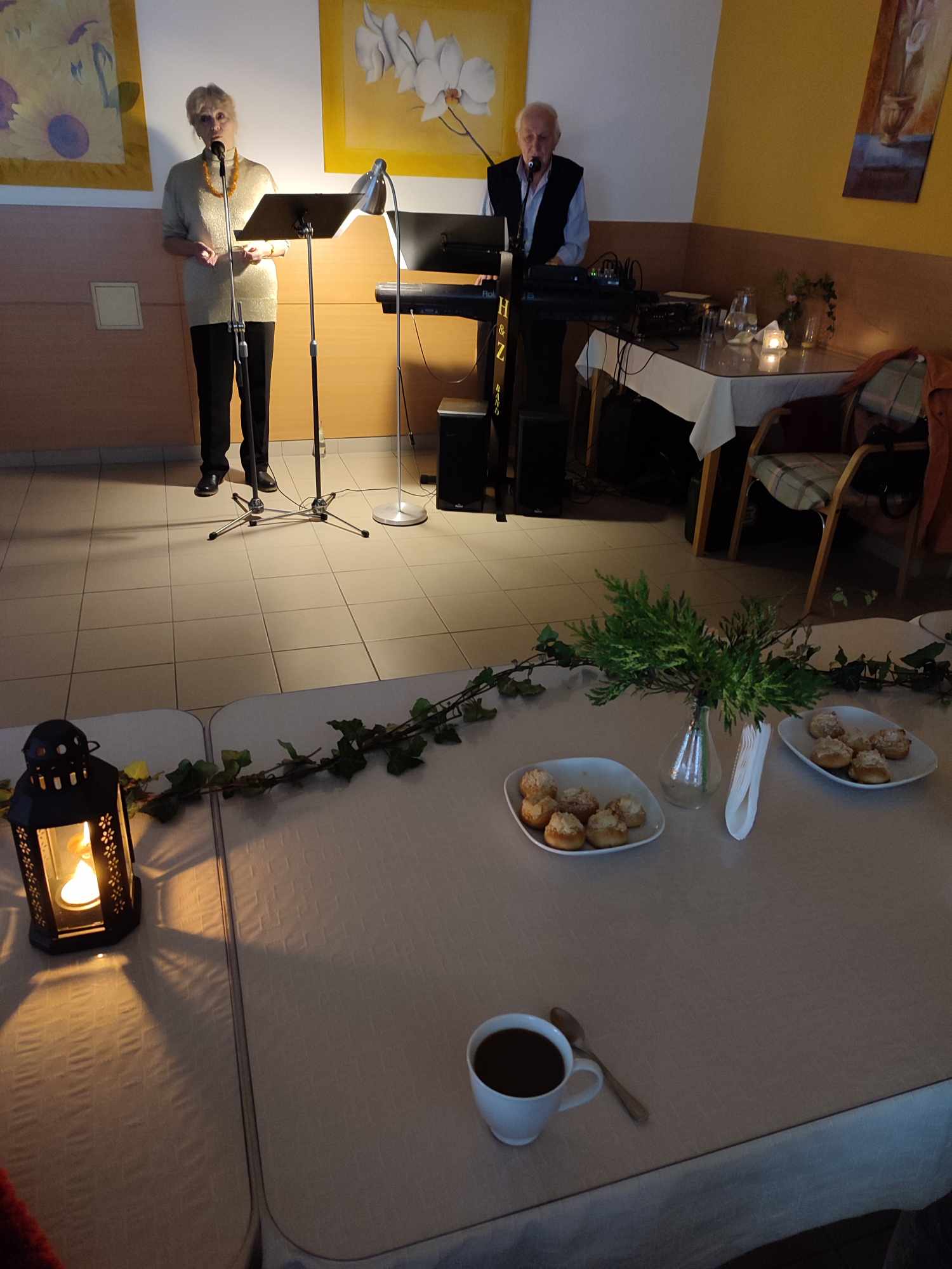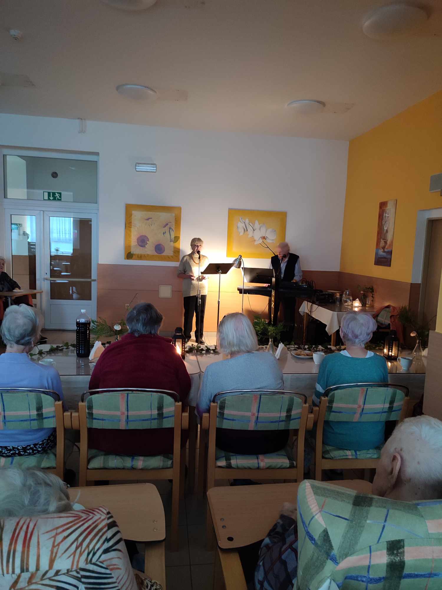 Krásnou atmosféru vykouzlily aktivizační pracovnice pro hudební vystoupení manželů Jarmarových a pro naše uživatele. Tímto děkujeme všem, kteří k této atmosféře přispěli. Uživatelé si tuto hudební chvíli báječně užili.