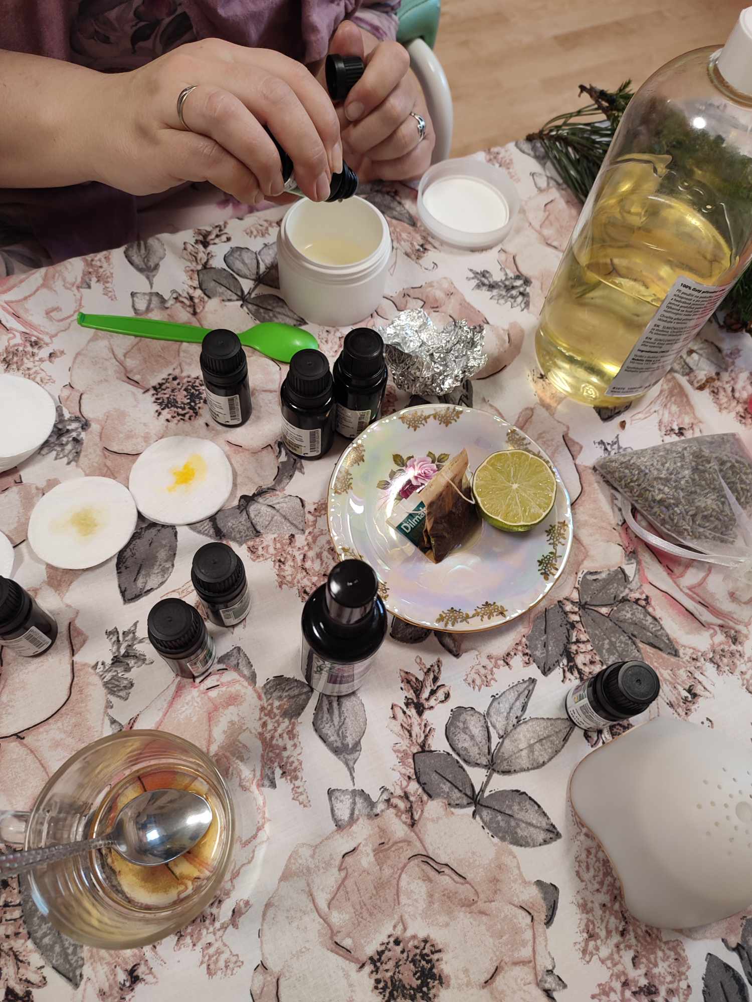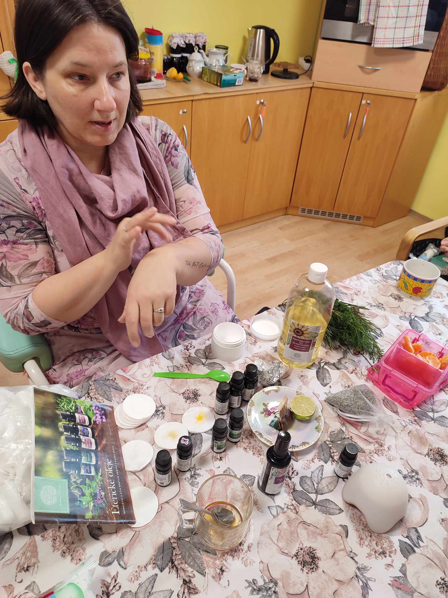 Aromapéče s našimi uživateli probíhala dopoledne pod vedením p. Ing. Hany Urbanové společně s aktivizační pracovnicí Domova, která nejlépe naše uživatele zná.