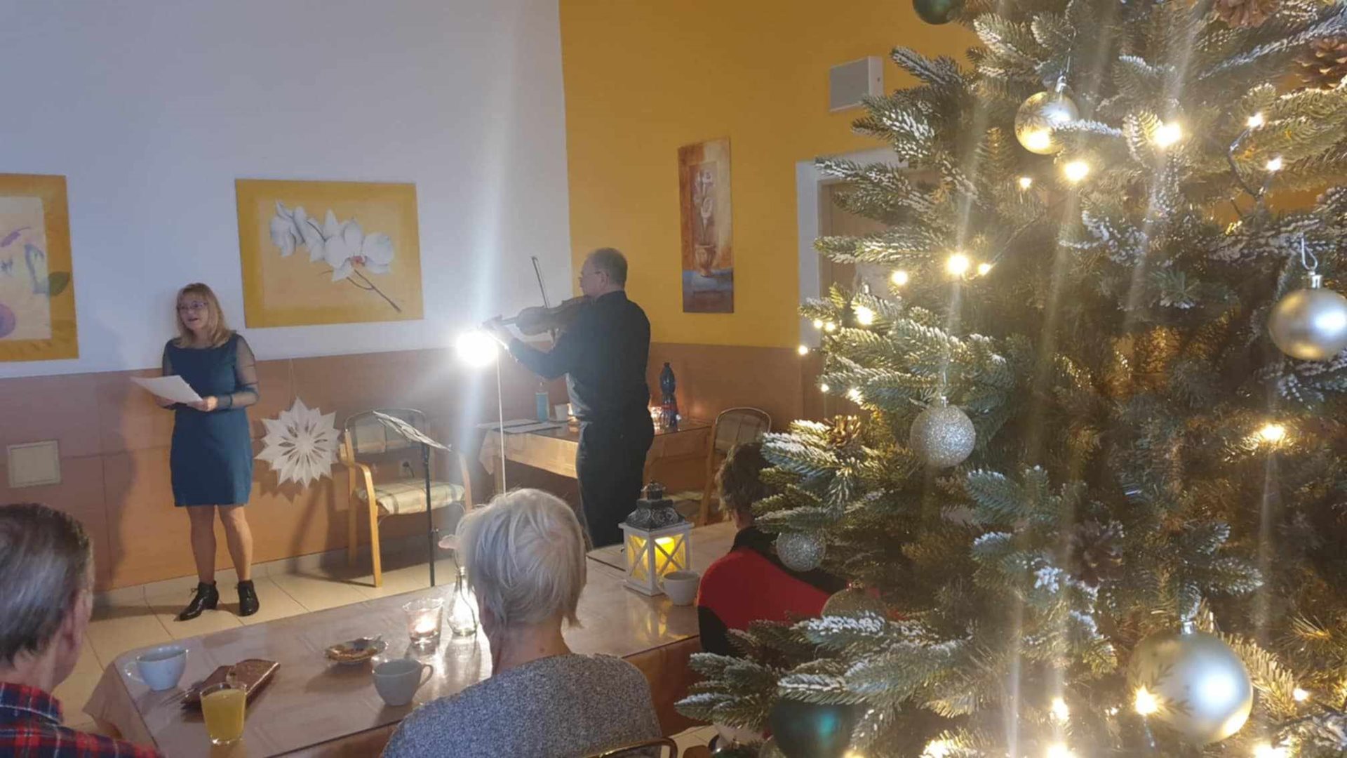 Po první adventní neděli nás dne 4.12.2024 navštívili umělci p.Fišnar - hra na housle s p.Gúzovou - zpěv.