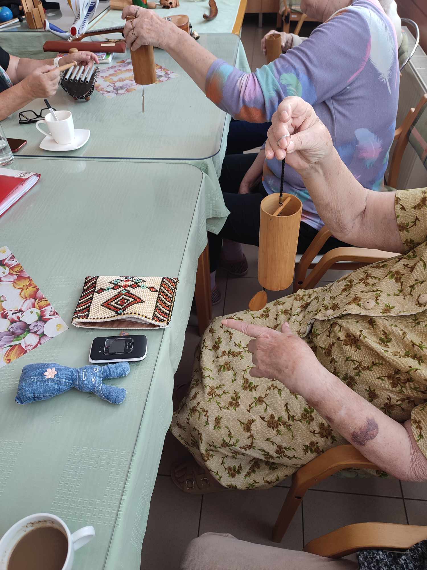 Naše uživatele také pravidelně, a to 1x za 14 dní zpravidla v pondělí dopoledne navštěvuje muzikoterapeutka paní Hana Mösnerová, která je známá jako „Bobina“. Vždy září jako sluníčko a kromě různých druhů netradičních hudebních nástrojů jako je např. kalimba nebo tibetská mísa, přiveze i dobrou náladu, která se přenáší i na naše uživatele.