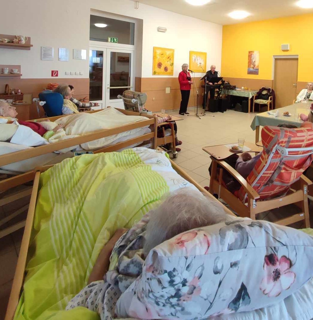 Dnešní dopoledne nám zpestřila hudební dvojice manželů Jarmarových z Pivonína, kteří již dlouhá léta k nám jezdí potěšit nejedno srdce krásnými lidovými písněmi.