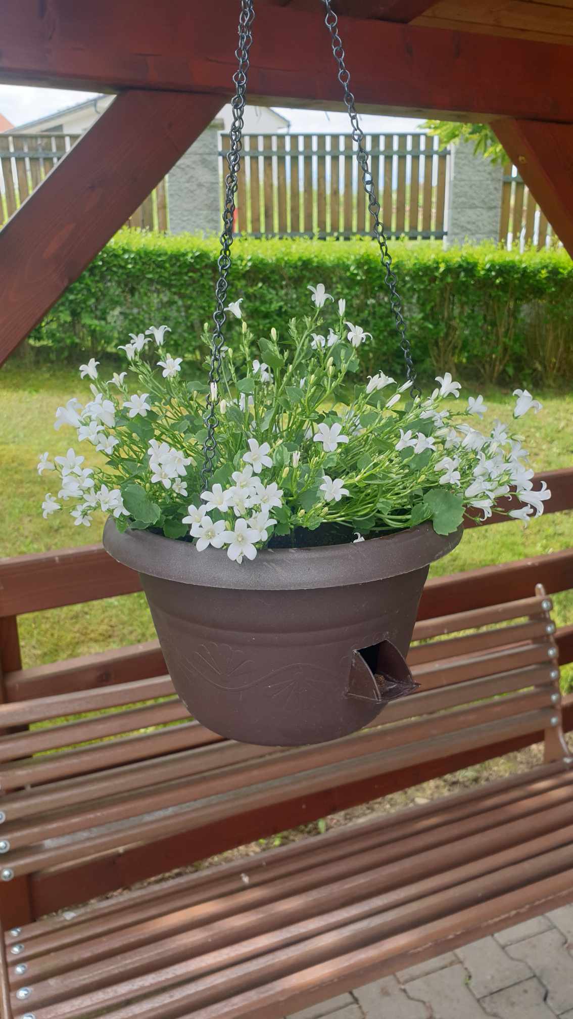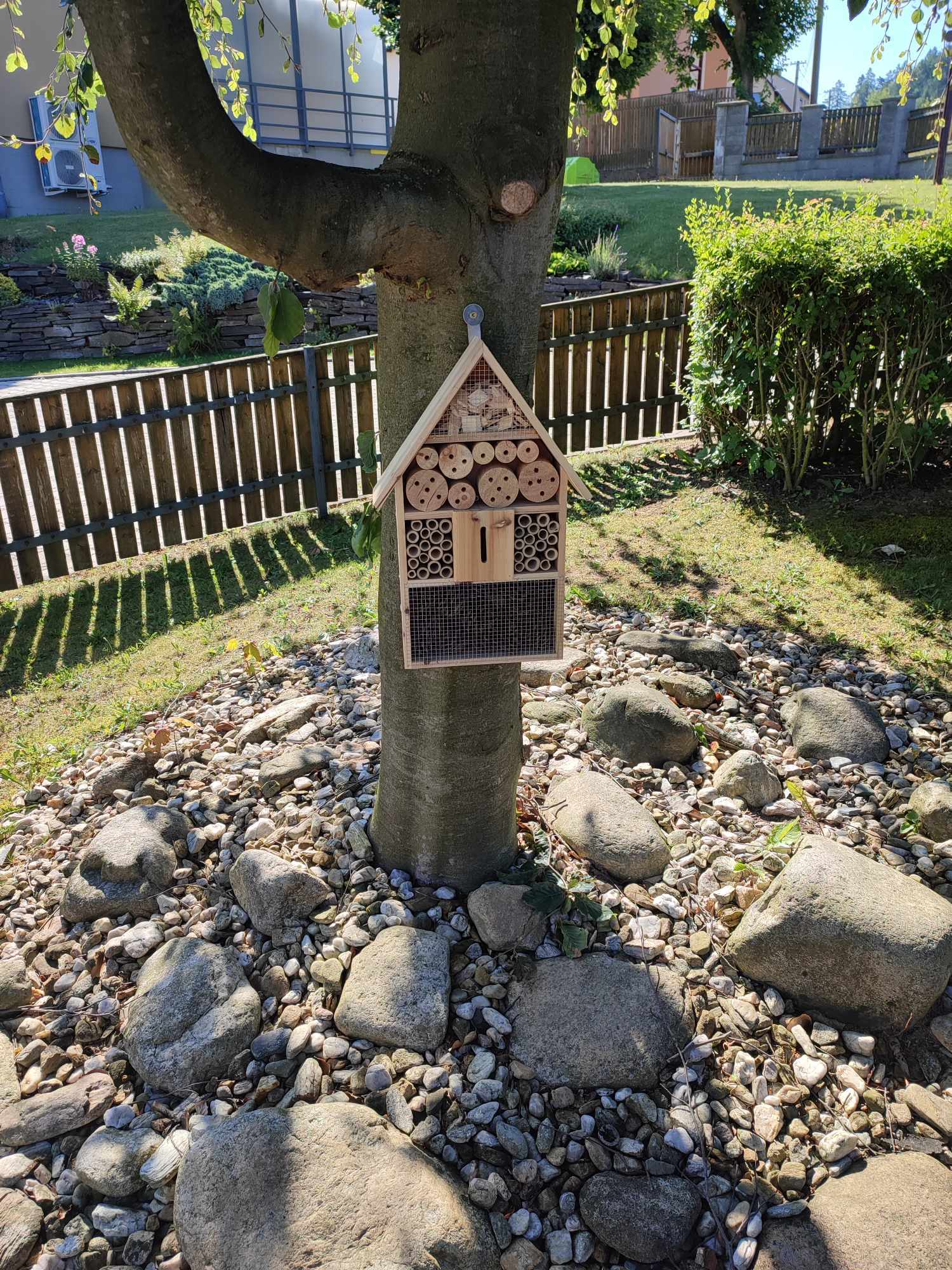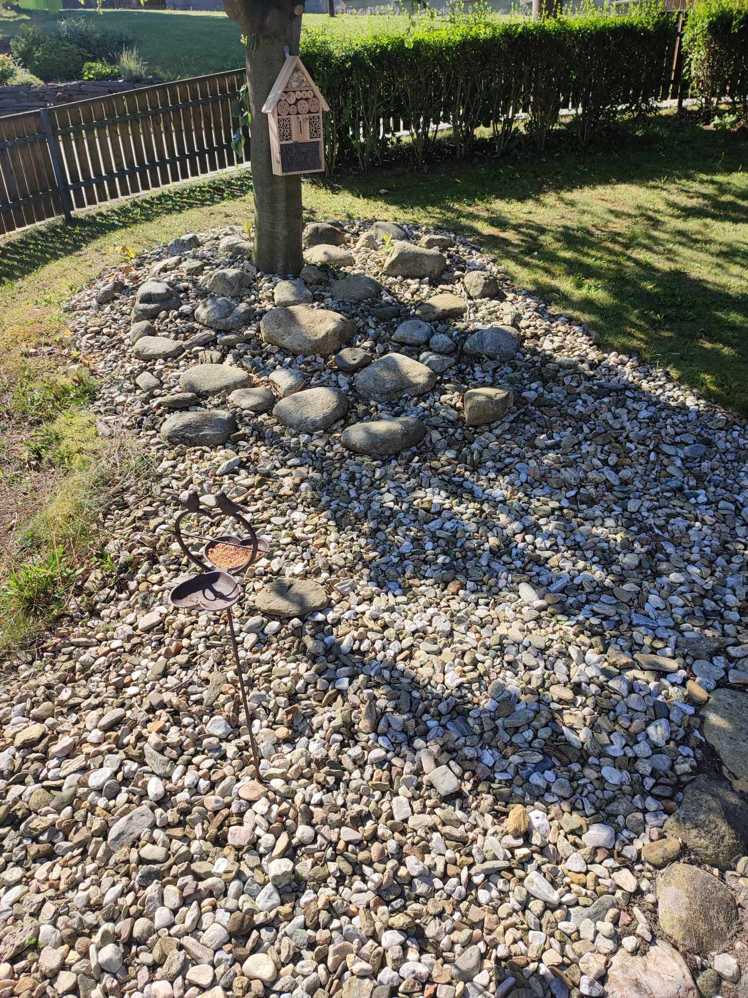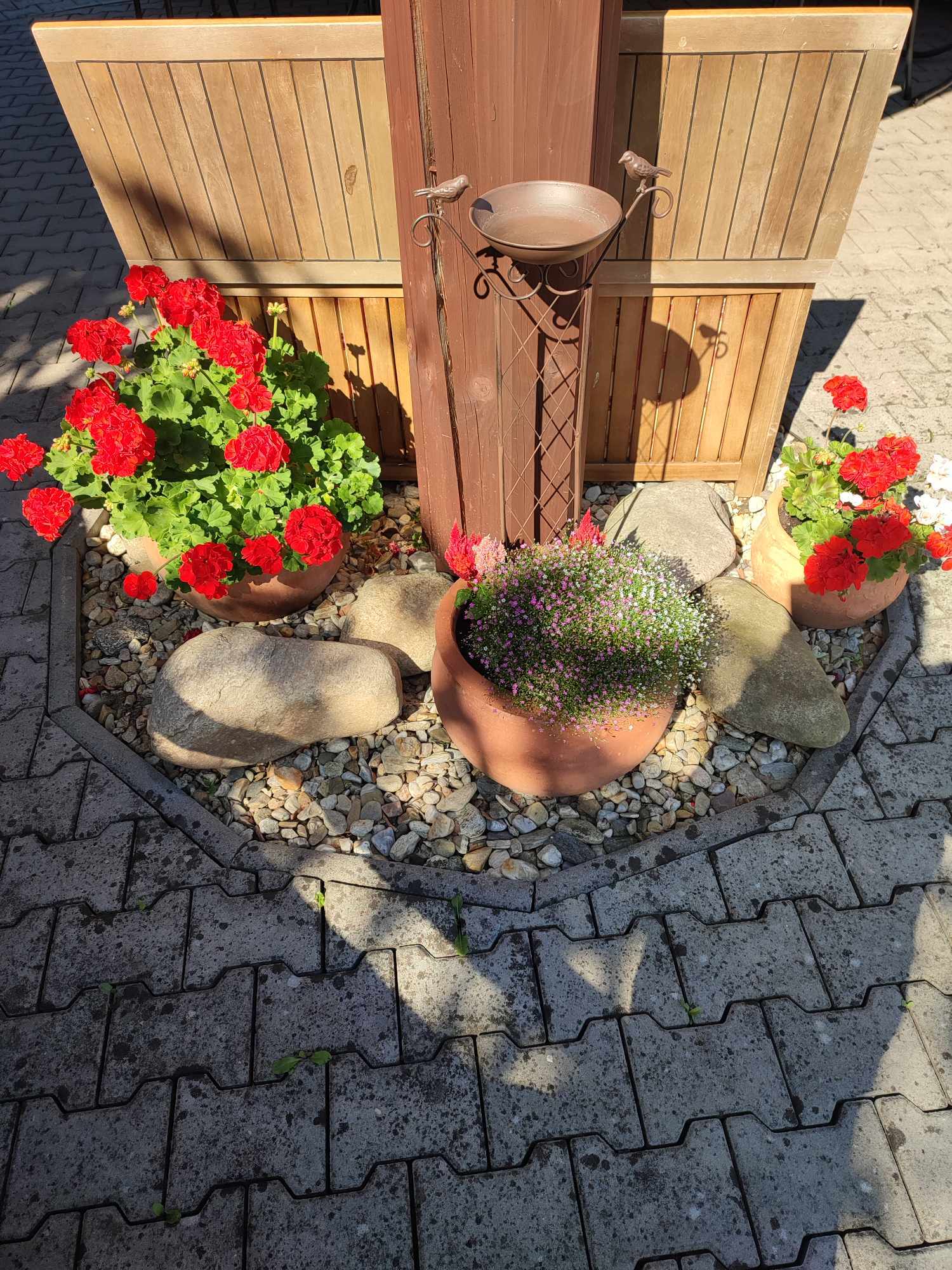 Posezení pod pergolou lze hojně využívat. Naše aktivizační pracovnice pro vás a hlavně vaše blízké upravují jemnými prvky prostředí, aby se vám příjemně sedělo a vše, co kolem vidíte, lahodilo vašemu oko. Pořídili hmyzí budku a dvě pítka pro ptáčky a osázeli truhlíky pod pergolou barevnými květinami.
