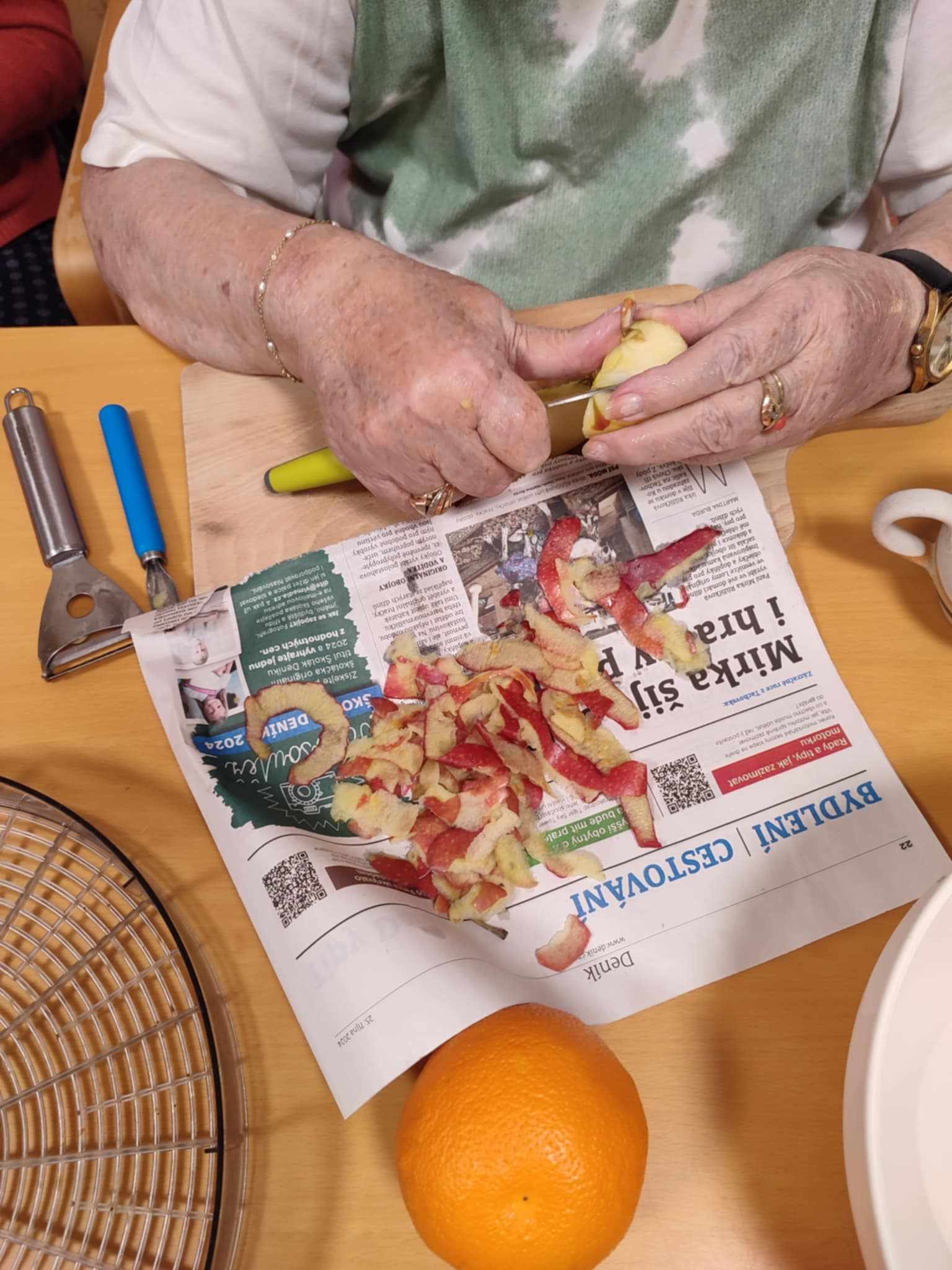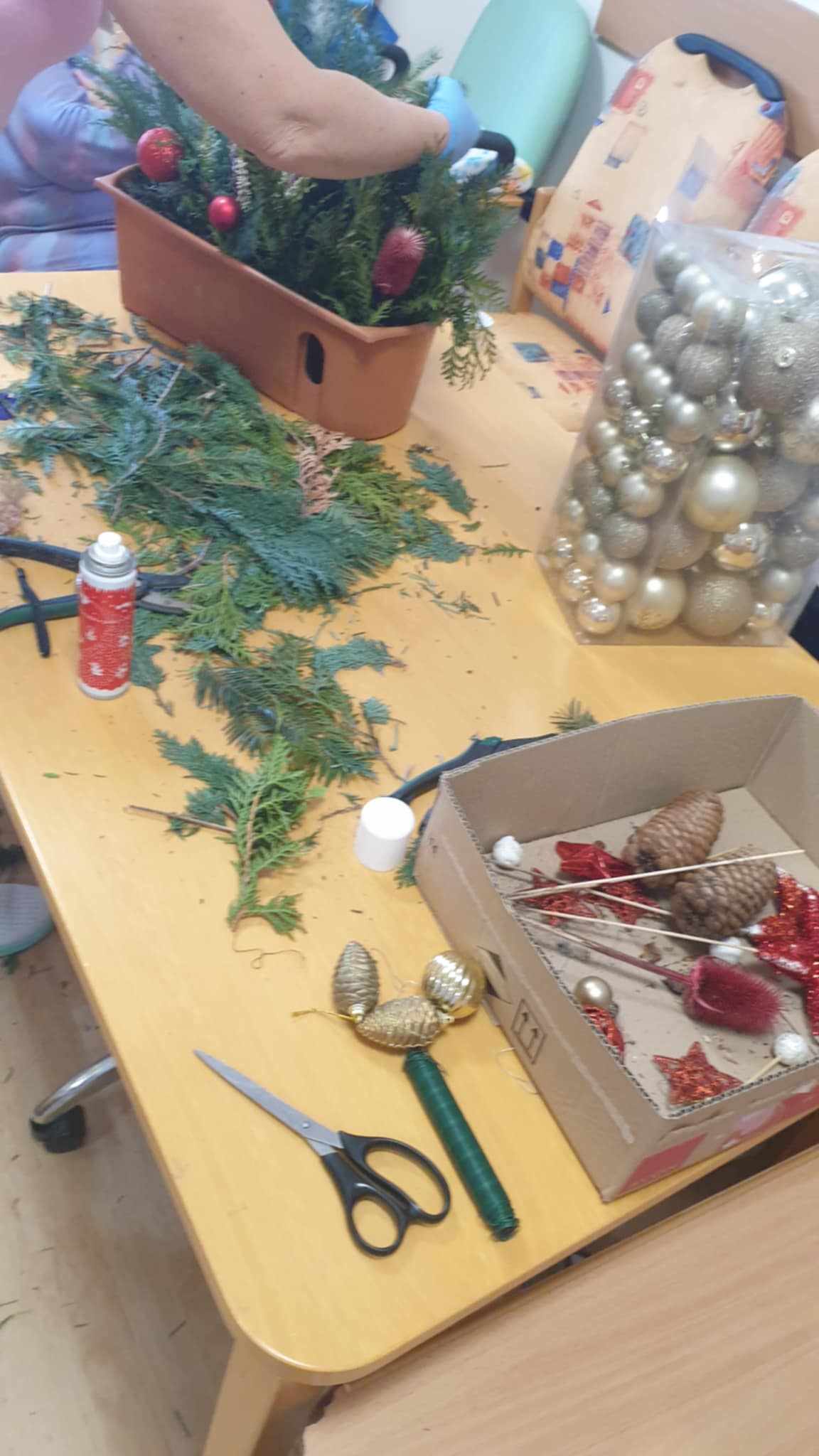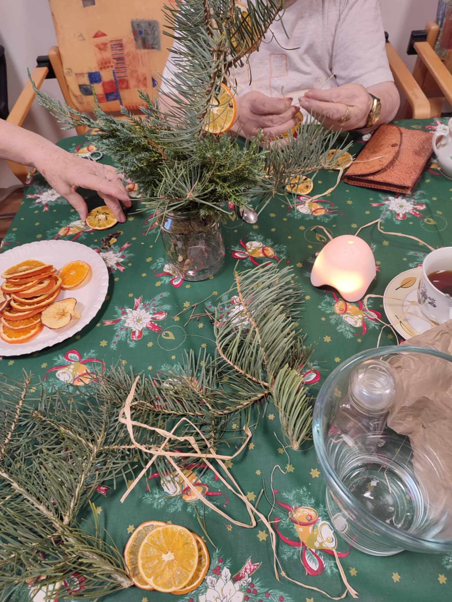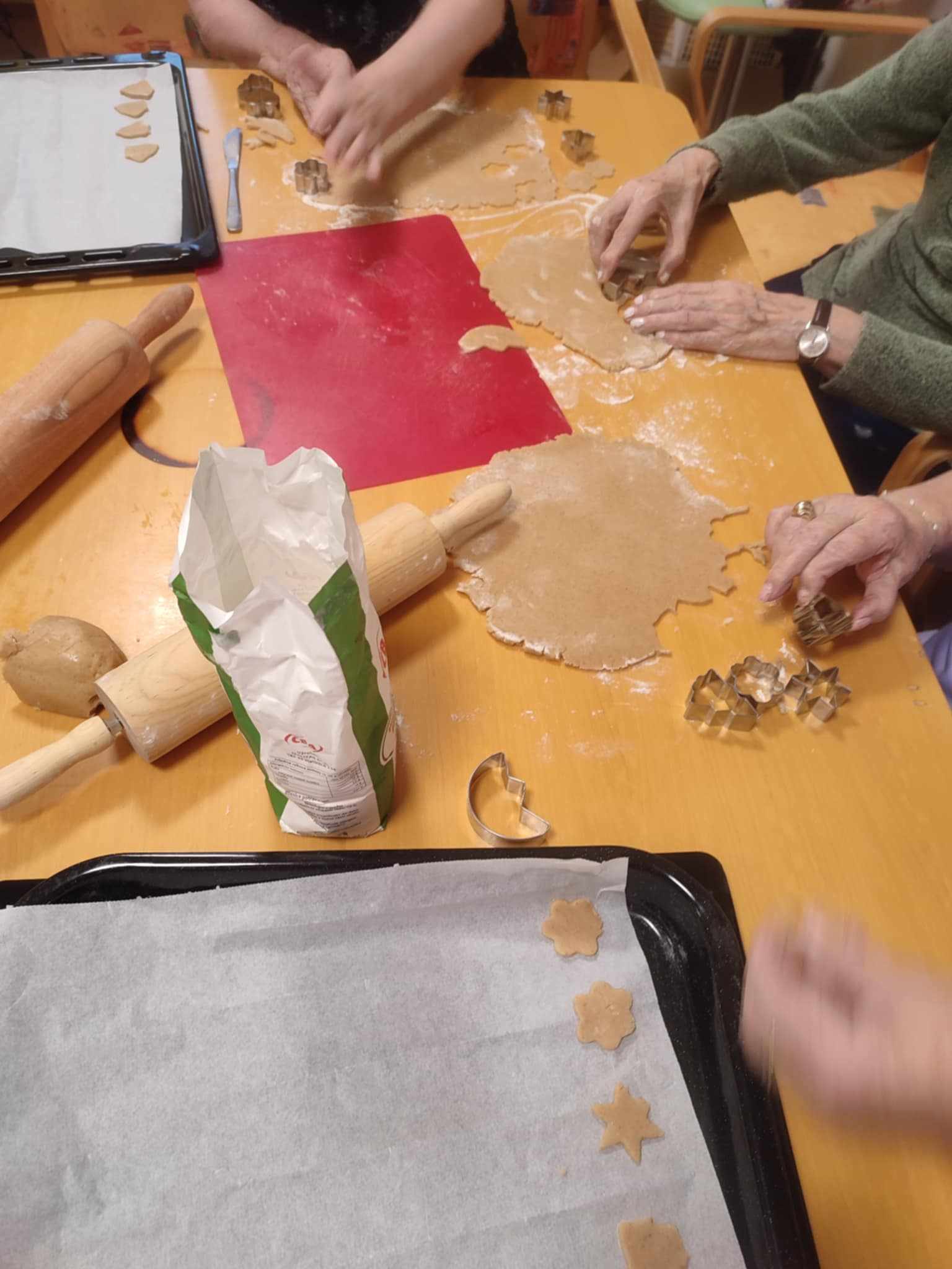V Domově panuje pravá vánoční atmosféra, kterou společně s našimi uživateli vytváříme prostřednictvím různých průběžných aktivit. Patří mezi ně tradiční zdobení vánočního stromečku, aranžování truhlíků s vánoční výzdobou a pečení perníčků i vanilkových rohlíčků, jejichž vůně naplňuje celý domov. K tomu sušíme ovoce na dekorace i na ochutnání, louskáme ořechy pro přípravu vánočního cukroví a šijeme pytlíčky, které poslouží jako i voňavé dekorace. Tyto činnosti nejen připomínají tradice, ale také přinášejí radost, tvořivost a společně strávený čas, který umocňuje pocit blížících se Vánoc.