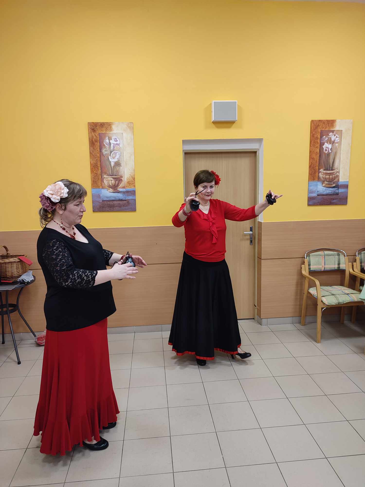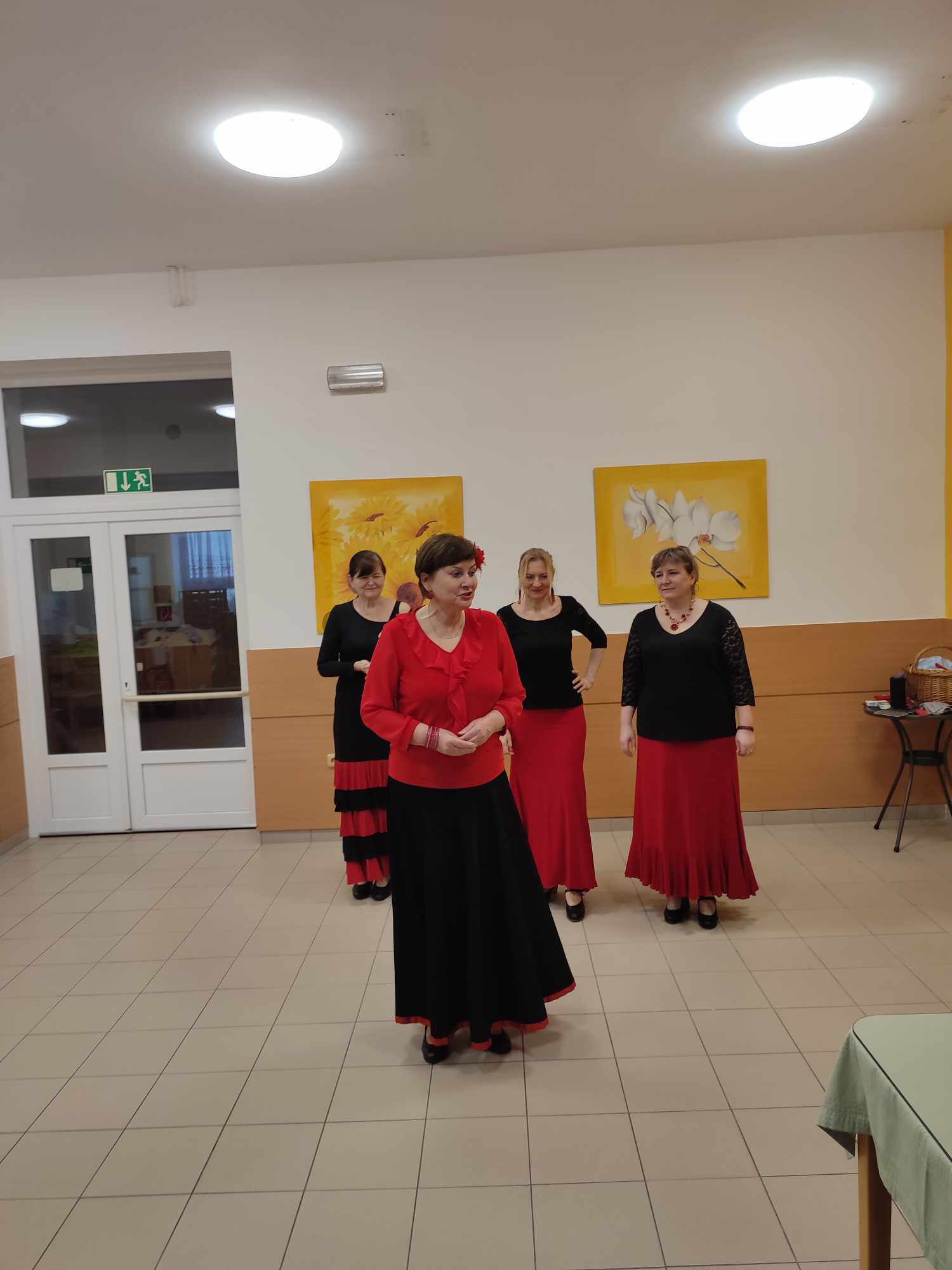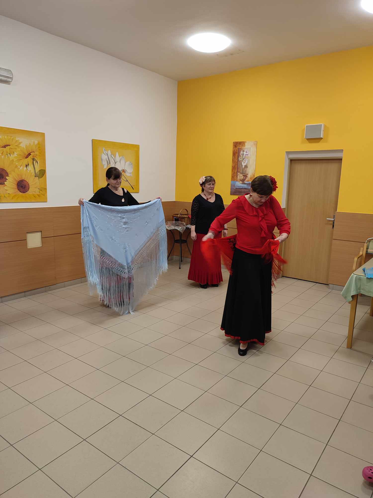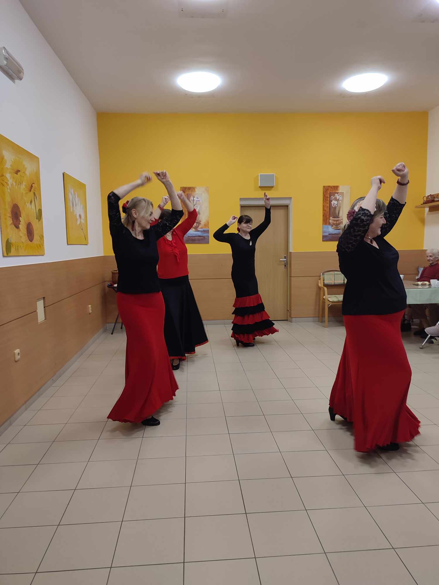 Zabývají se španělskými tanci tzv. FLAMENGEM. Tance jsou velmi temperamentní, oděv a doplňky jsou výrazné a lahodí oku. Takže přítomné povzbudilo do tance. Zapojil se také personál. Mnohé přítomné dámy si nechaly do vlasů vetknout květinu a ovívaly se vějíři, které se při tanci také využívají.