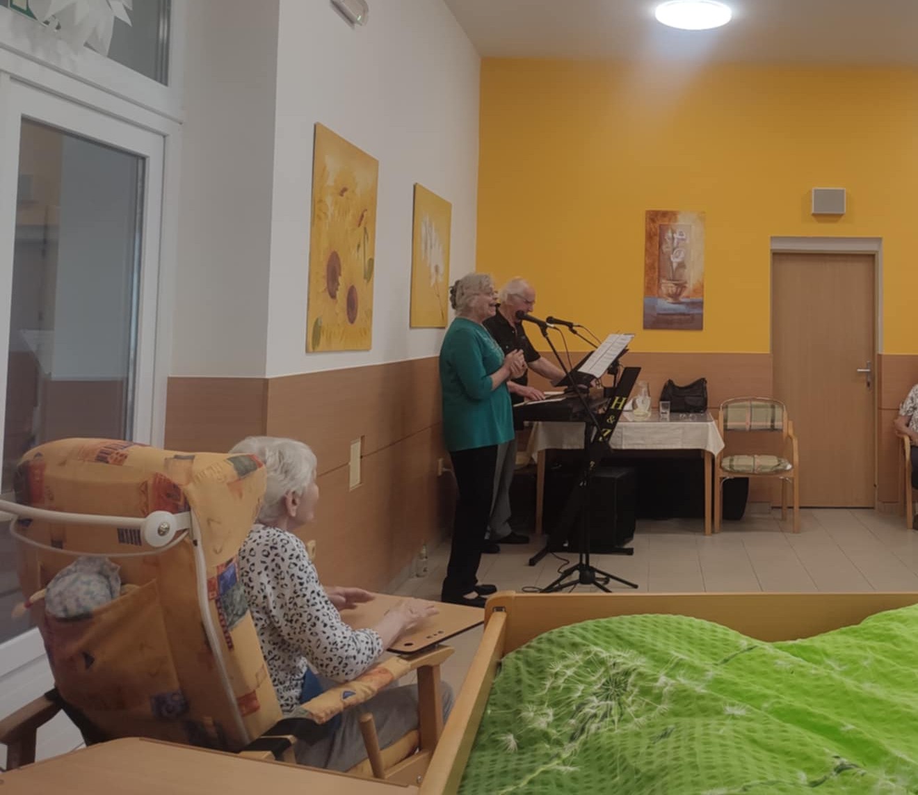 V pondělí dopoledne jsme si v domově užili příjemné hudební vystoupení manželů Jarmarových. Program zahrnoval hru na klávesy, zpěv známých písní i taneční doprovod. Atmosféra byla velmi veselá, uživatelé si s chutí zazpívali a někteří se přidali i tancem. Děkujeme manželům Jarmarovým za krásné dopoledne plné hudby a příjemné atmosféry.