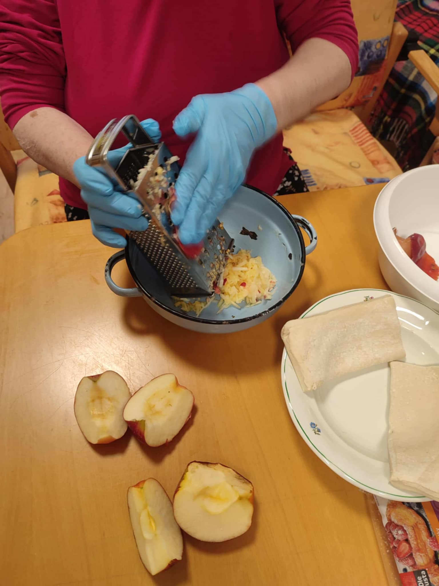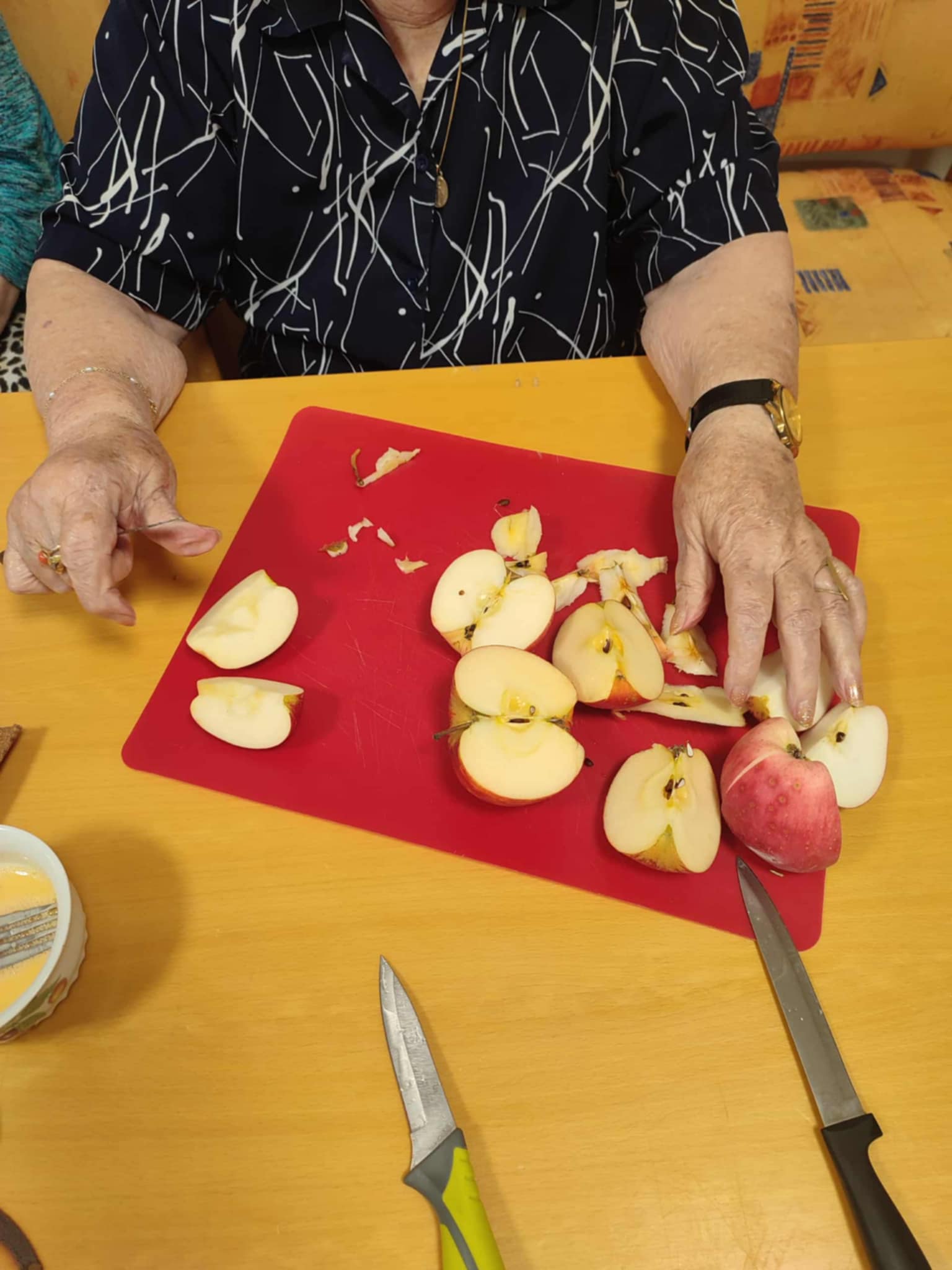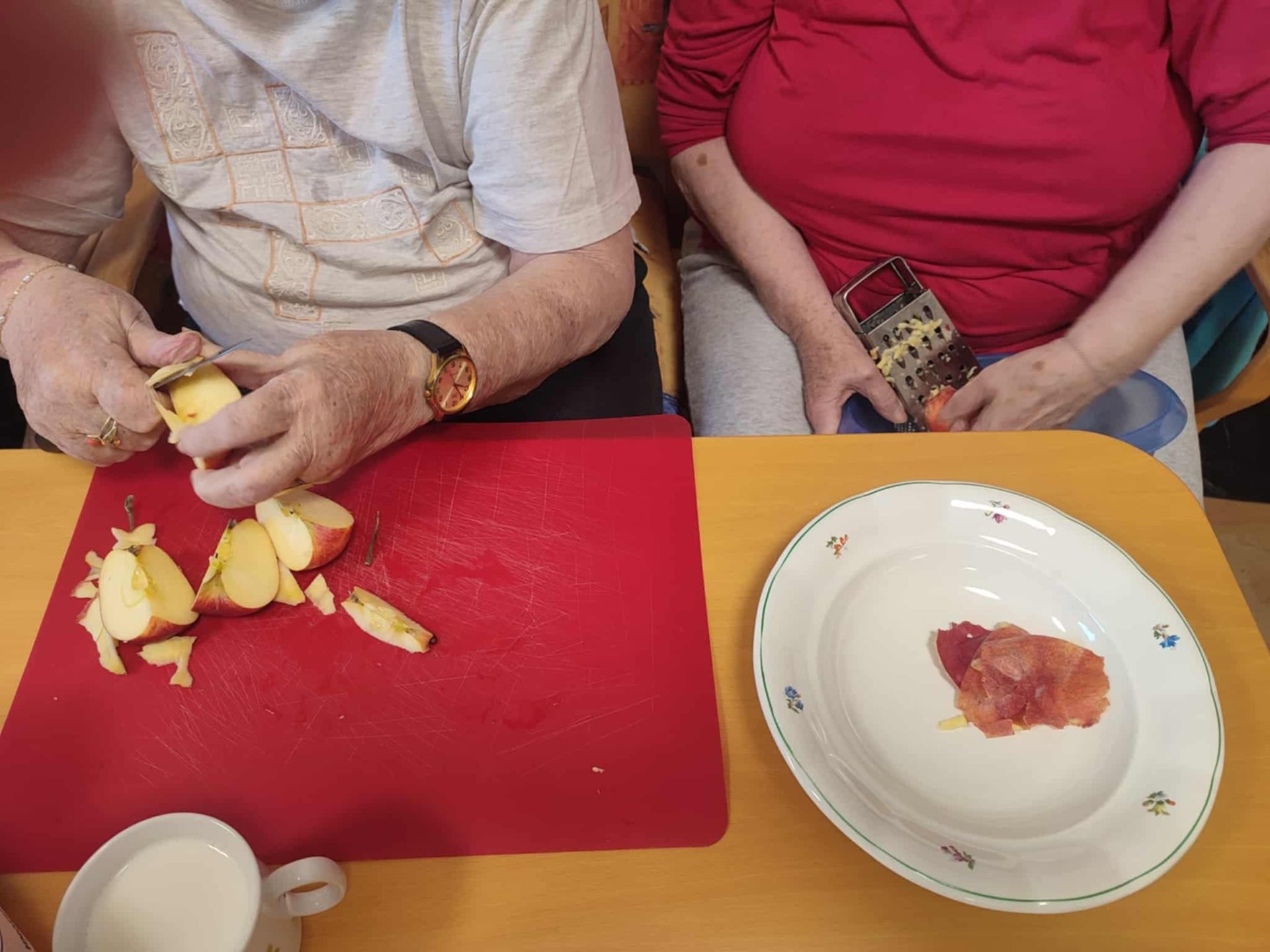 Toto období bylo také bohaté na kulinářské zážitky. Společně s aktivizačními pracovnicemi naši uživatelé pekli lahodné jablečno-skořicové bábovky, které naplnily domov příjemnou vůní. Nechyběl ani tradiční štrúdl a oblíbené bramboráky a bramborový salát, které si všichni s radostí vychutnali.