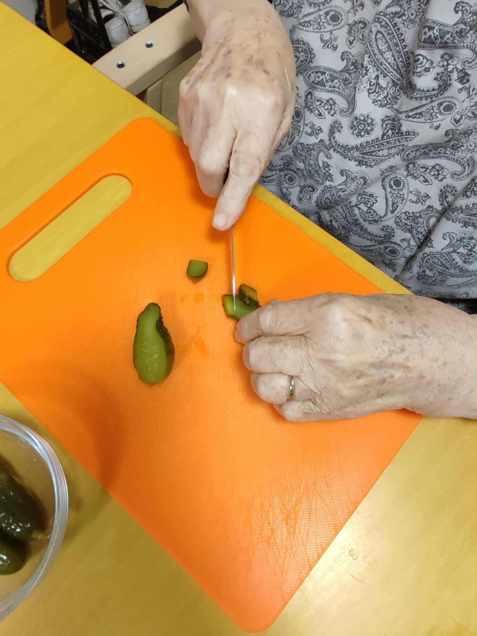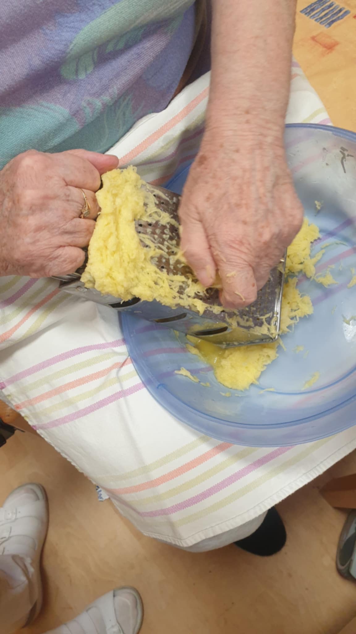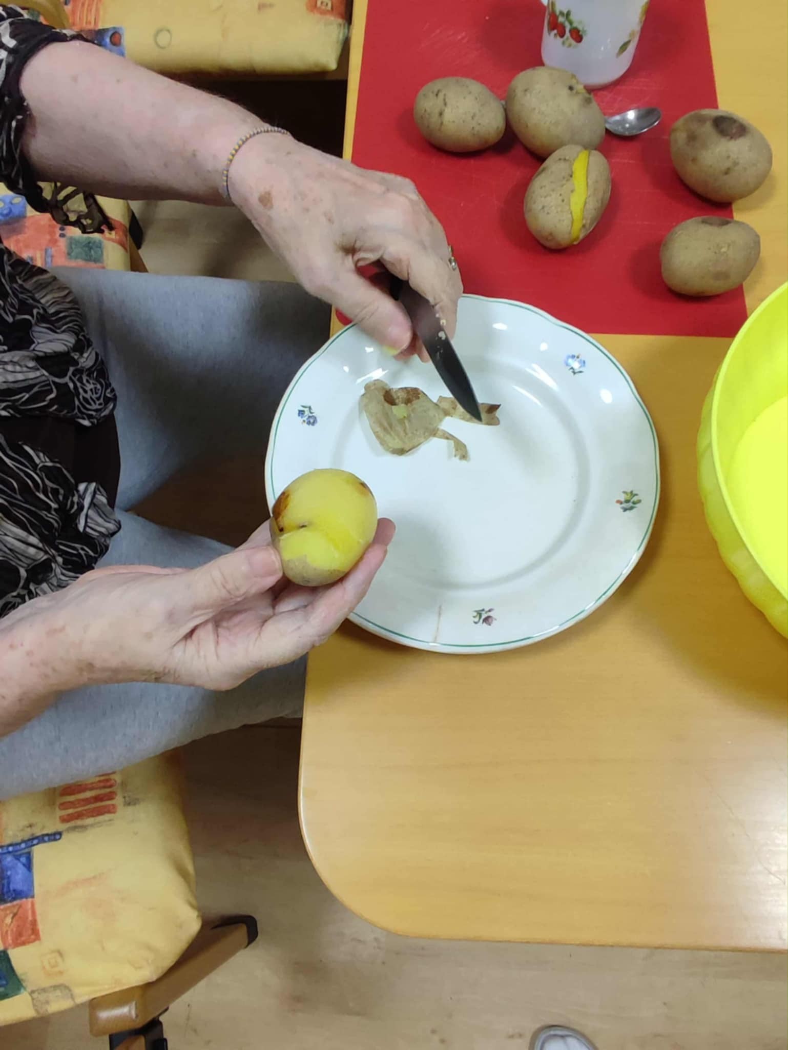 Toto období bylo také bohaté na kulinářské zážitky. Společně s aktivizačními pracovnicemi naši uživatelé pekli lahodné jablečno-skořicové bábovky, které naplnily domov příjemnou vůní. Nechyběl ani tradiční štrúdl a oblíbené bramboráky a bramborový salát, které si všichni s radostí vychutnali.