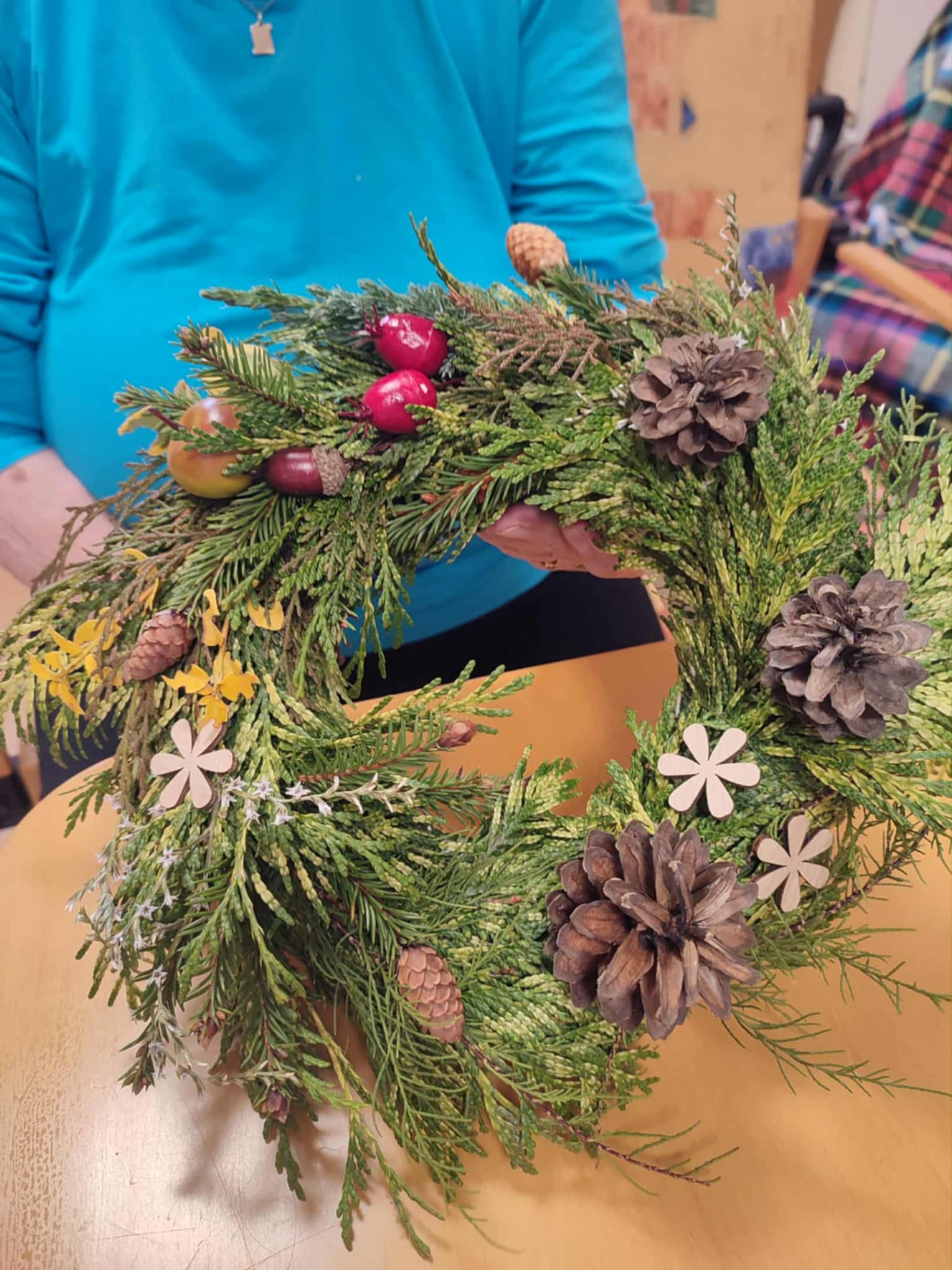 Podzim v našem domově byl plný pestrých aktivit a událostí, které obohatily naše dny. Kromě pravidelných terapií, jako je canisterapie a muzikoterapie, jsme se věnovali aromatpéči a běžným denním činnostem. Uživatelky se s nadšením pustily do výroby věnců na památku zesnulých za podpory aktivizačních pracovnic, které s úctou položili na místním hřbitově.