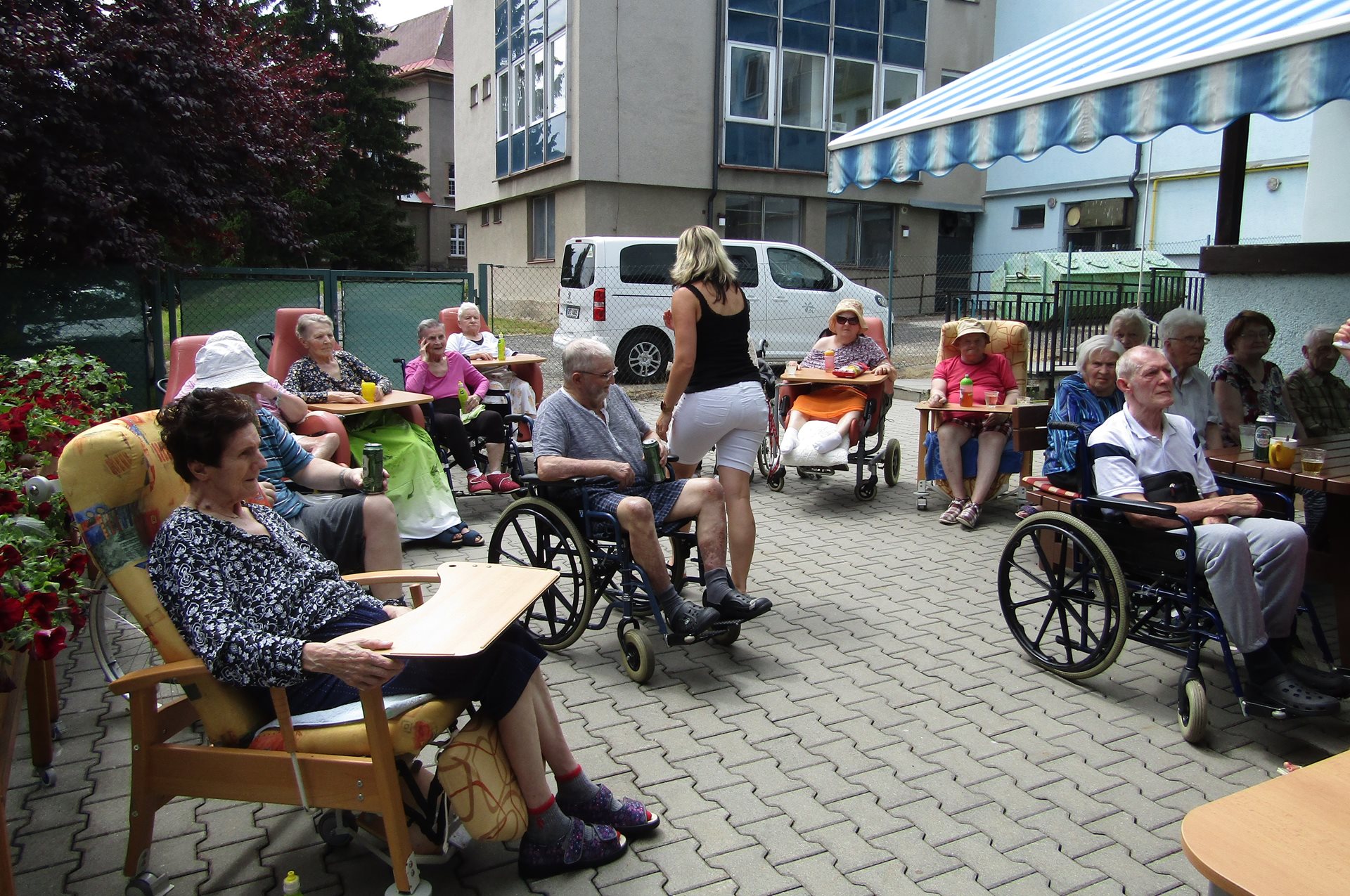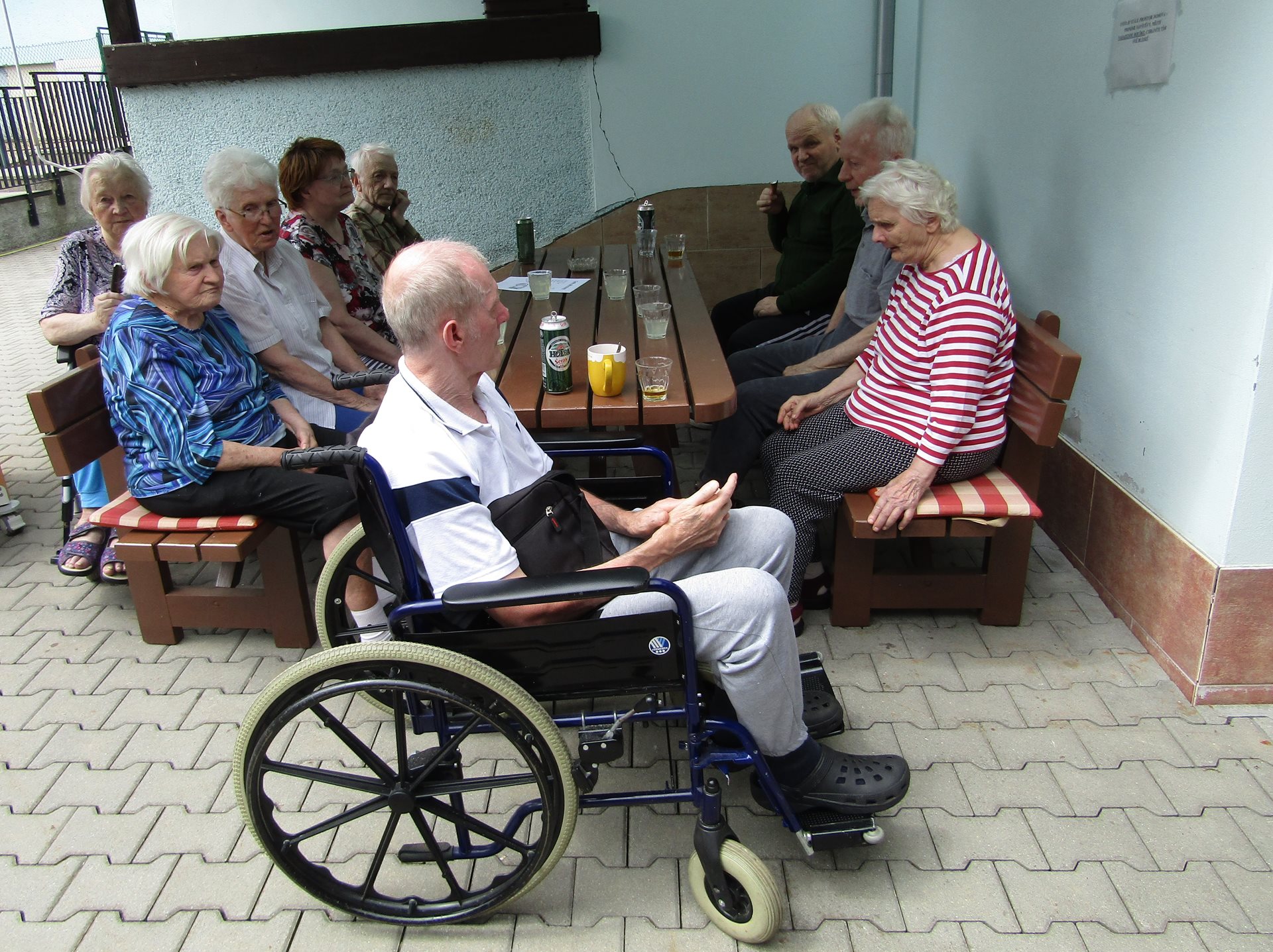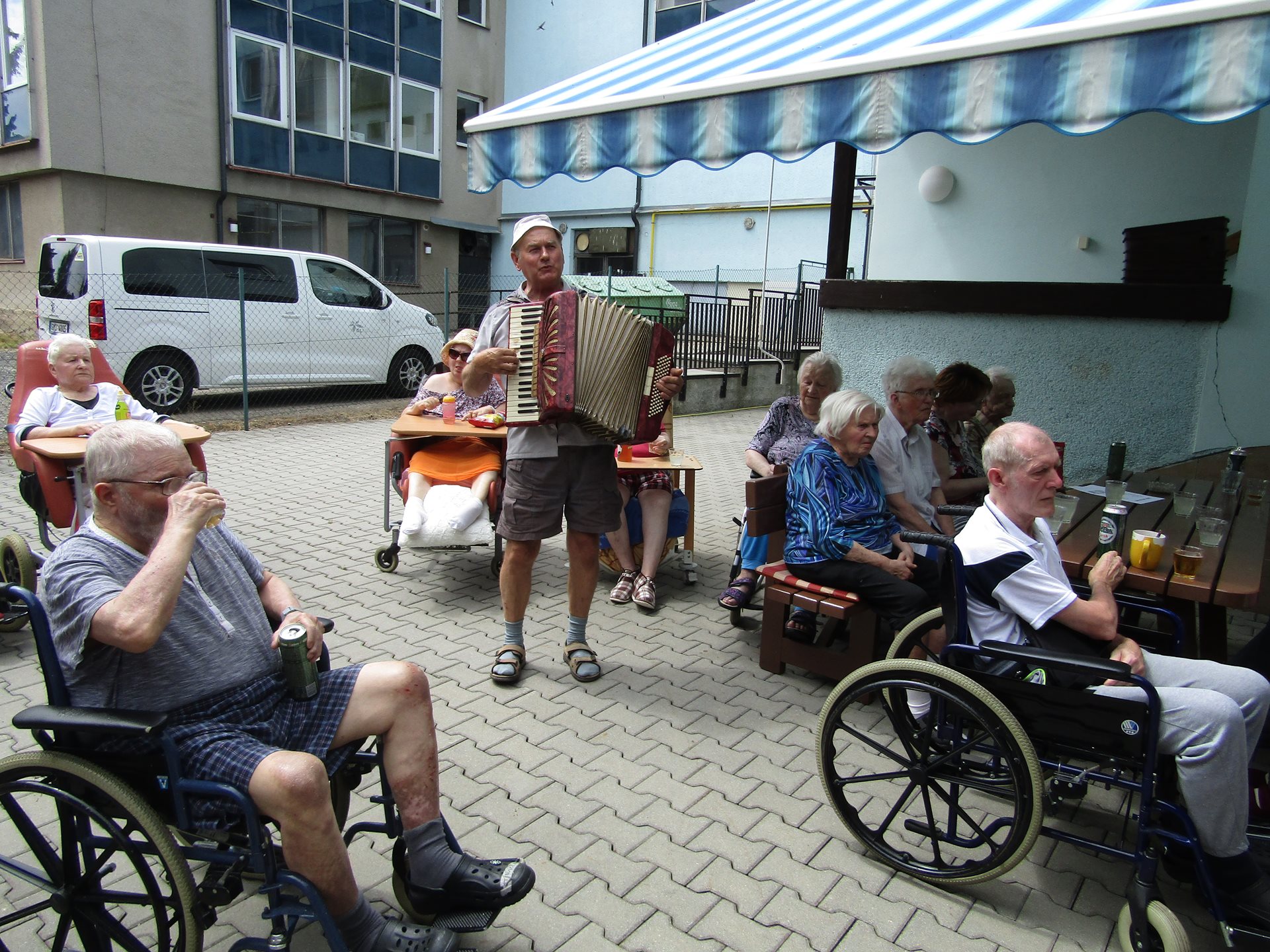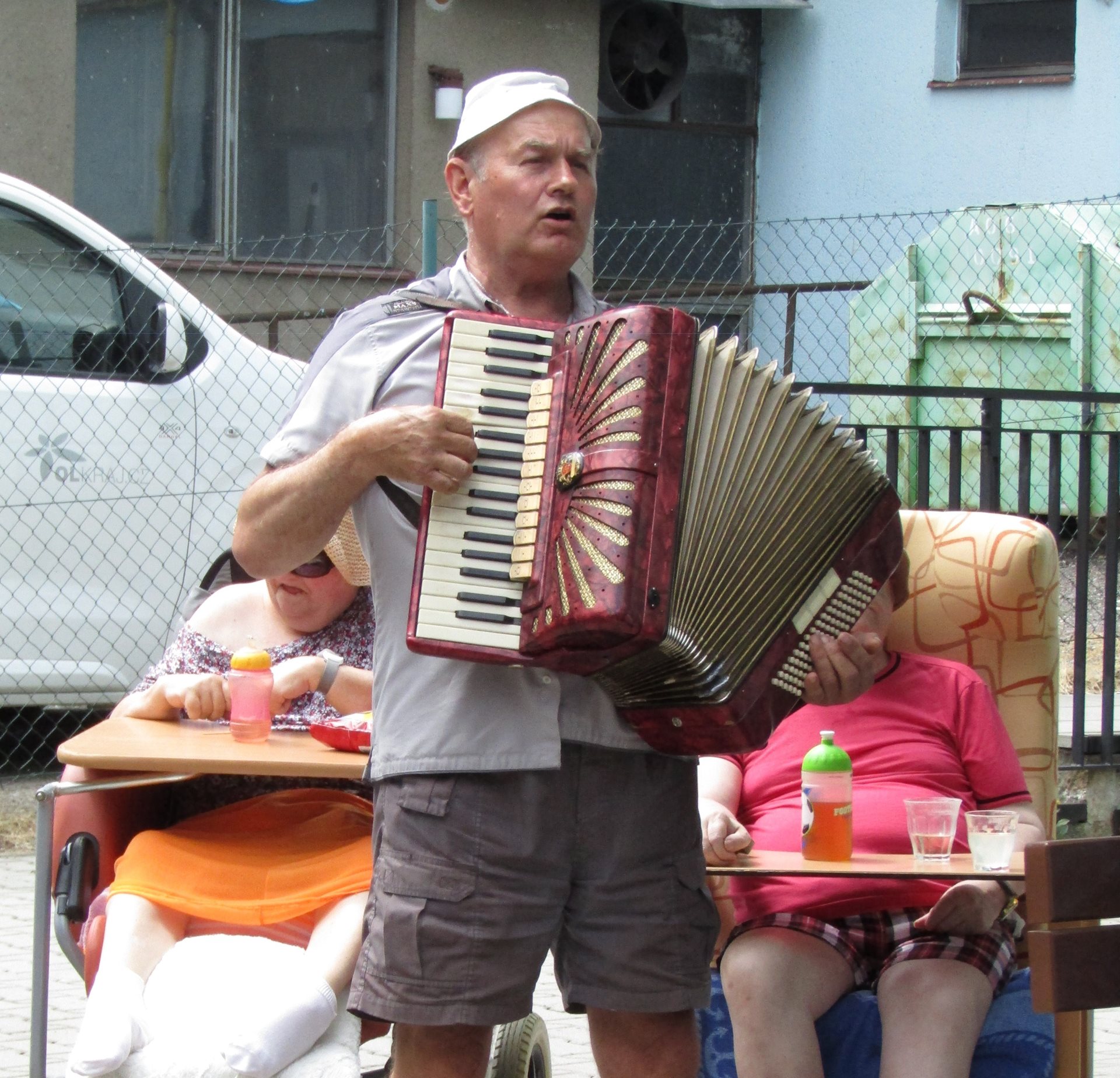 Na konci června nás navštívil pan harmonikář a krásně nám zpříjemnil jedno předprázdninové odpoledne. Je to opravdu "Pan muzikant" - zahrál i zazpíval písničky všech možných žánrů, hrál i na přání a zazpíval si s ním snad každý, kdo se posezení zúčastnil.