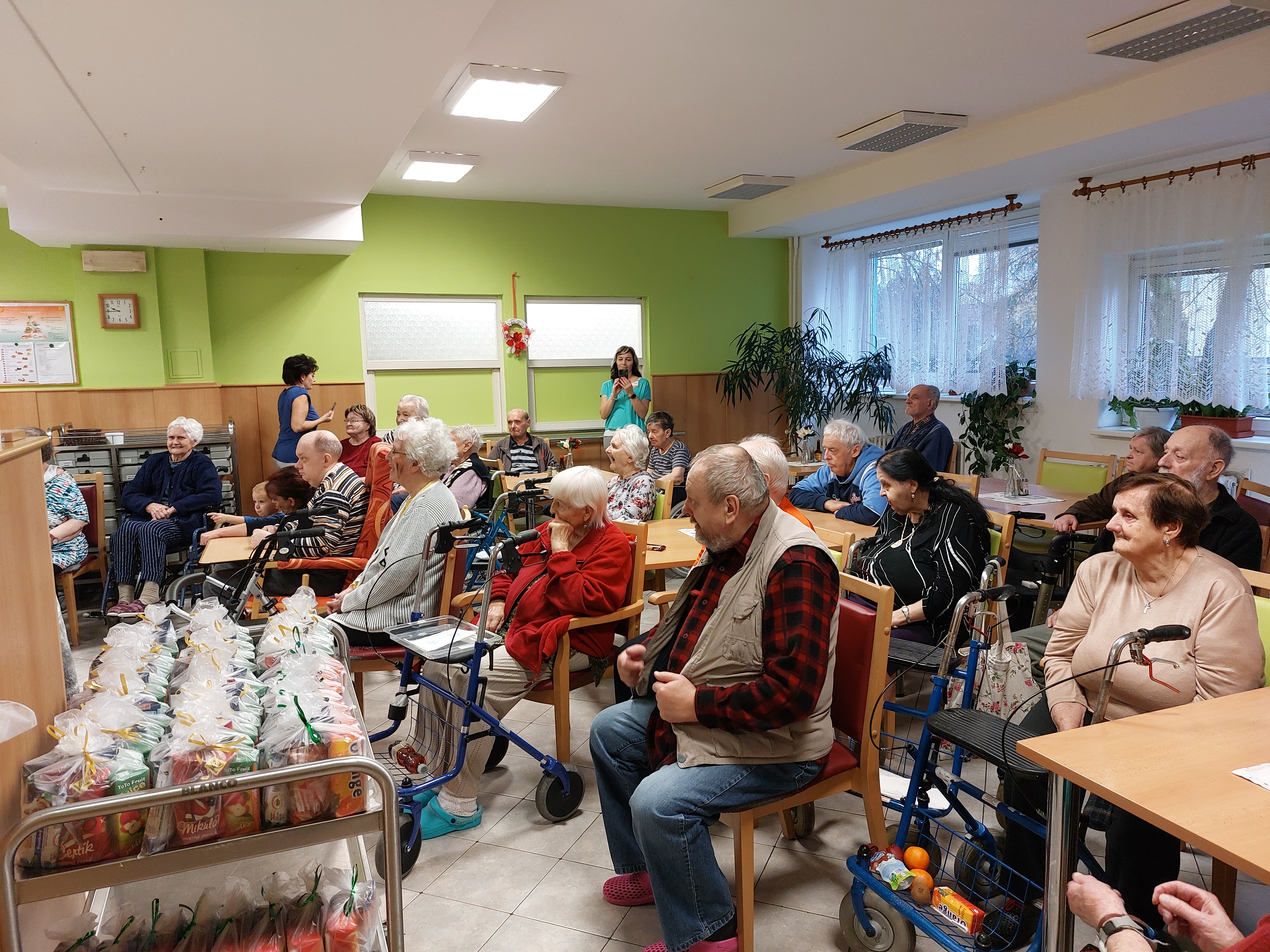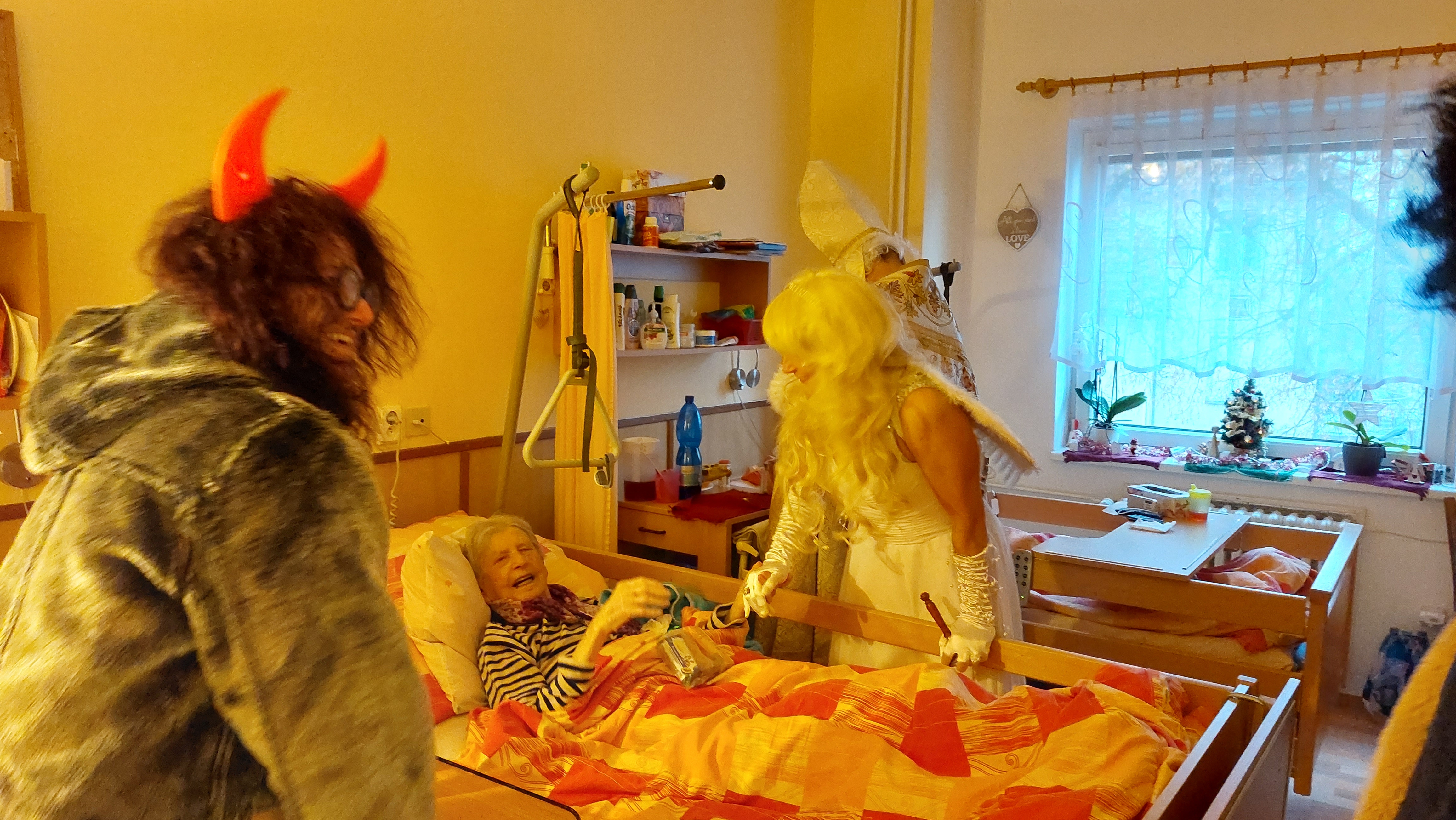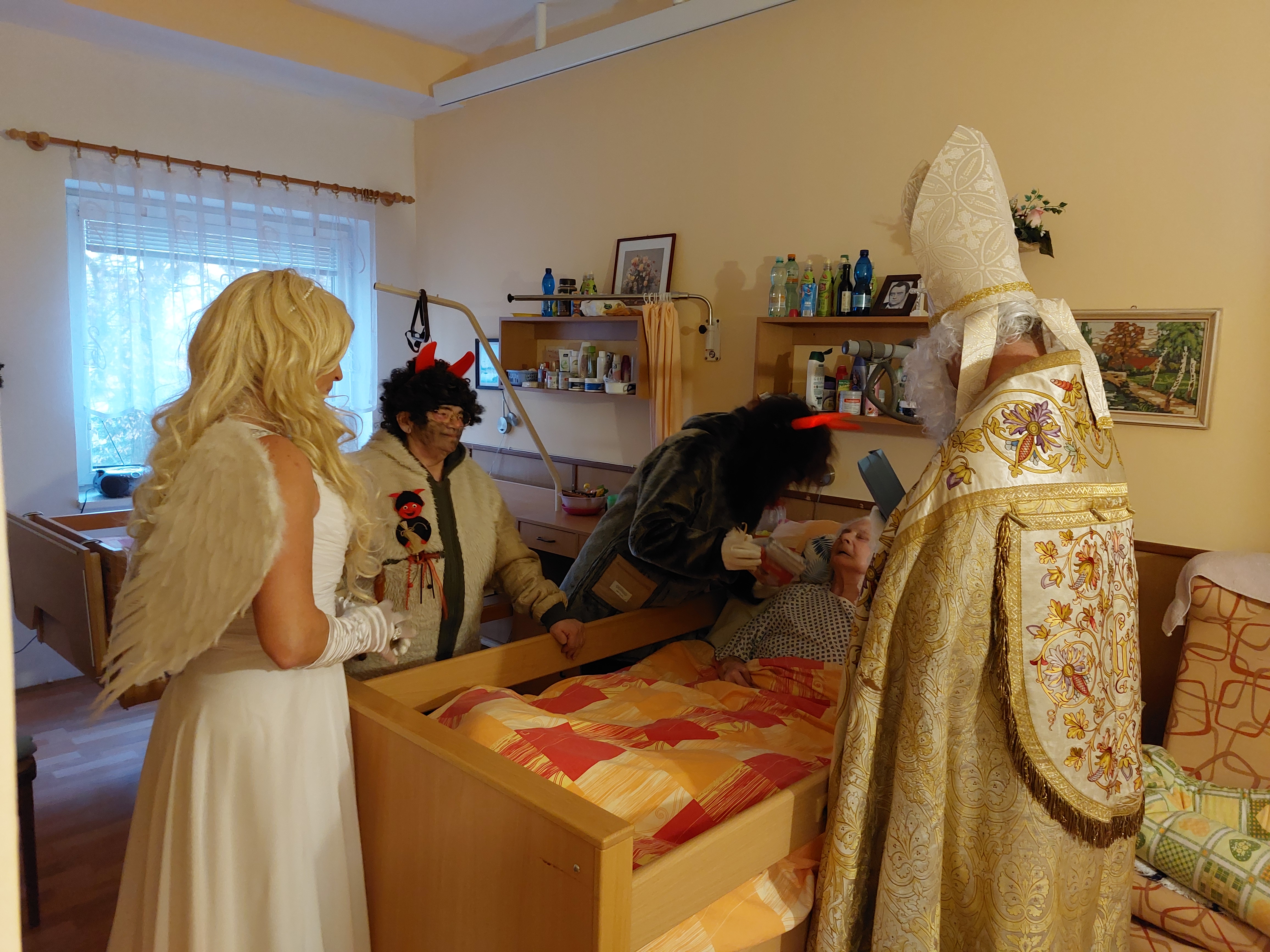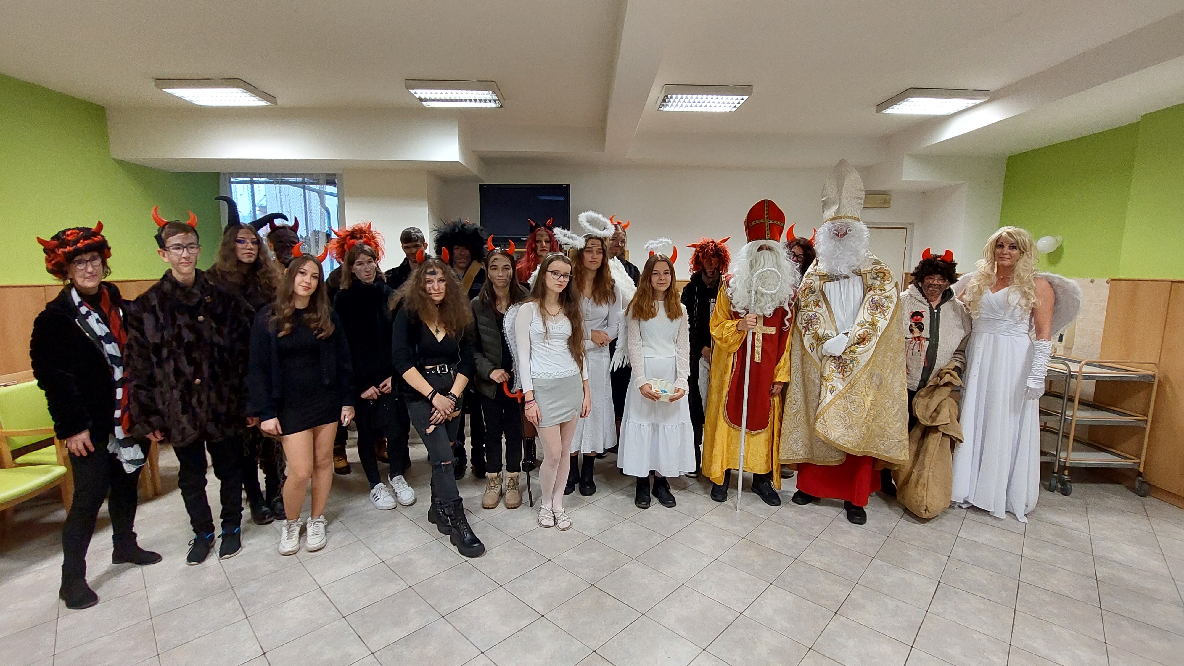 I letos k nám do Domova zavítal Svatý Mikuláš. Tentokrát byl jeho doprovod početnější, protože spolu s ním přišli i čerti a andělé z místní základní školy.
