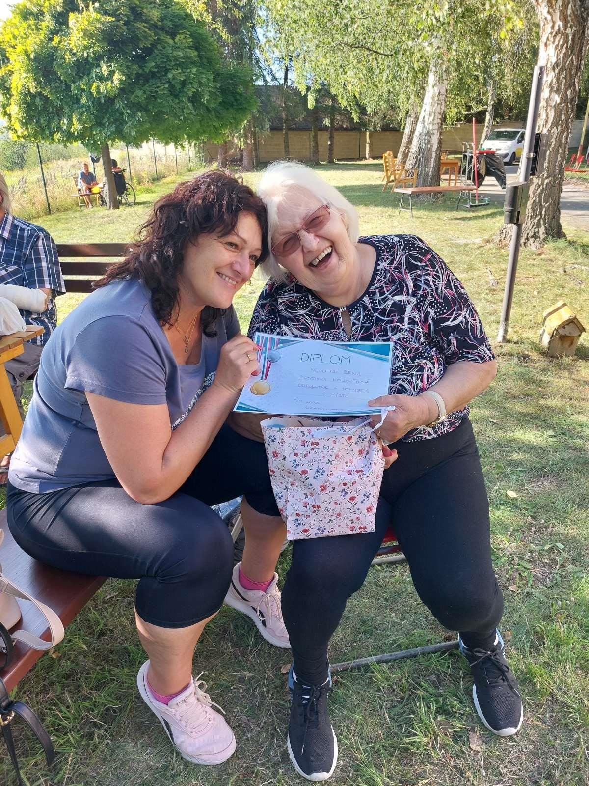 Dnešní akce proběhla v zahradě Domova pro seniory v Šumperku, zúčastnilo se jí celkem 9 soutěžních družstev, které měřily své síly v 8 disciplínách. A našemu štíteckému pětičlennému týmu se tentokrát podařilo vybojovat krásné druhé místo. A navíc jedna naše klientka získala nejvyšší počet bodů ze všech zúčastněných soutěžících. Našemu družstvu tedy patří velká gratulace a Sociálním službách pro seniory Šumperk velký dík za perfektní zorganizování celé akce.