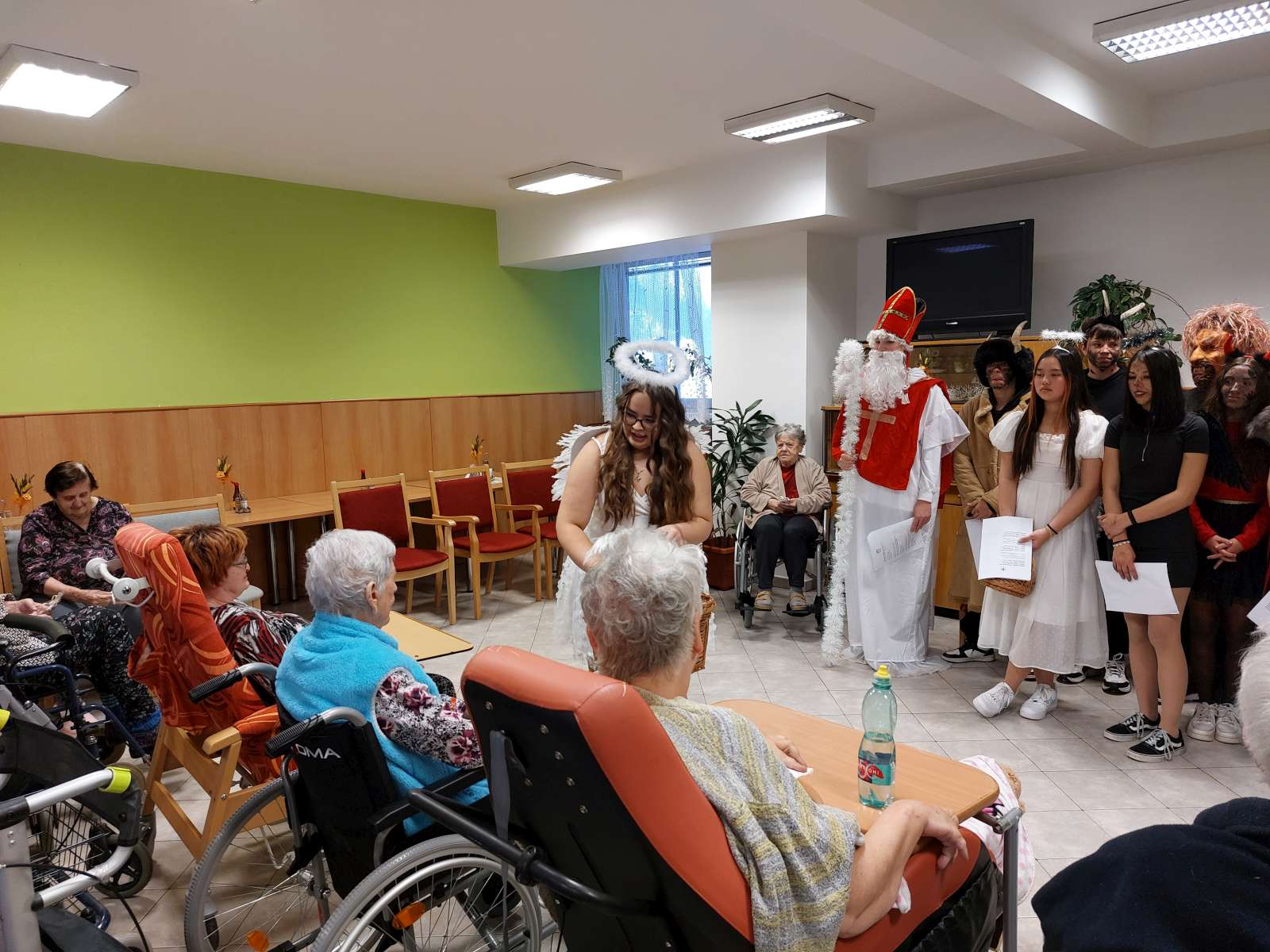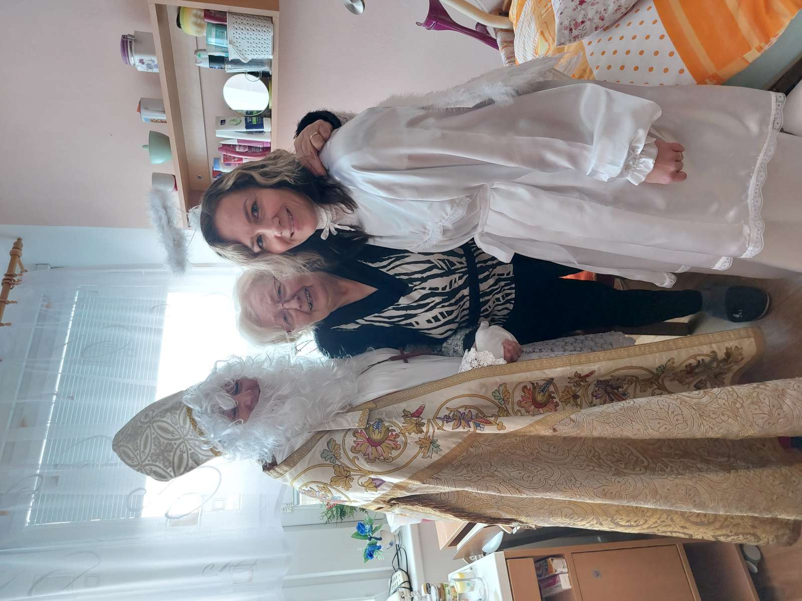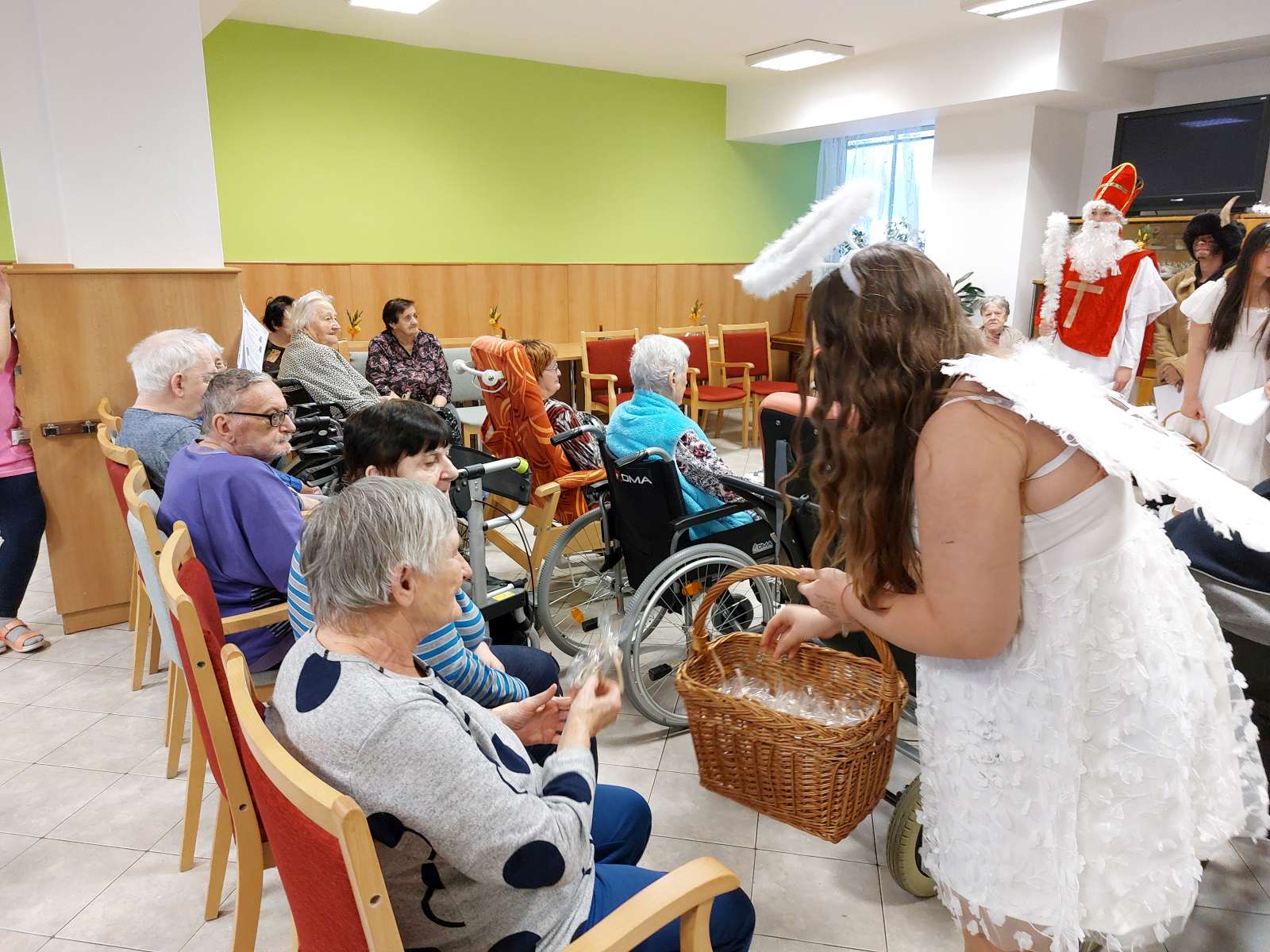 Svatý Mikuláš k nám do Domova zavítal 5.12.2023. Přišel v doprovodu čertů a andělů z místní základní školy. Za hudebního doprovodu pana učitele Baslera nám všichni zazpívali vánoční koledy. A kromě klasické mikulášské nadílky nás čekalo ještě jedno milé překvapení - jedna šikovná "andělka" společně se svou maminkou doma napekla a nazdobila plný koš perníčků, kterými všechny naše klienty obdarovala, za což jí ještě jednou moc děkujeme.