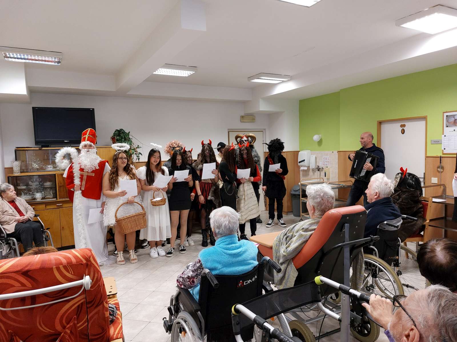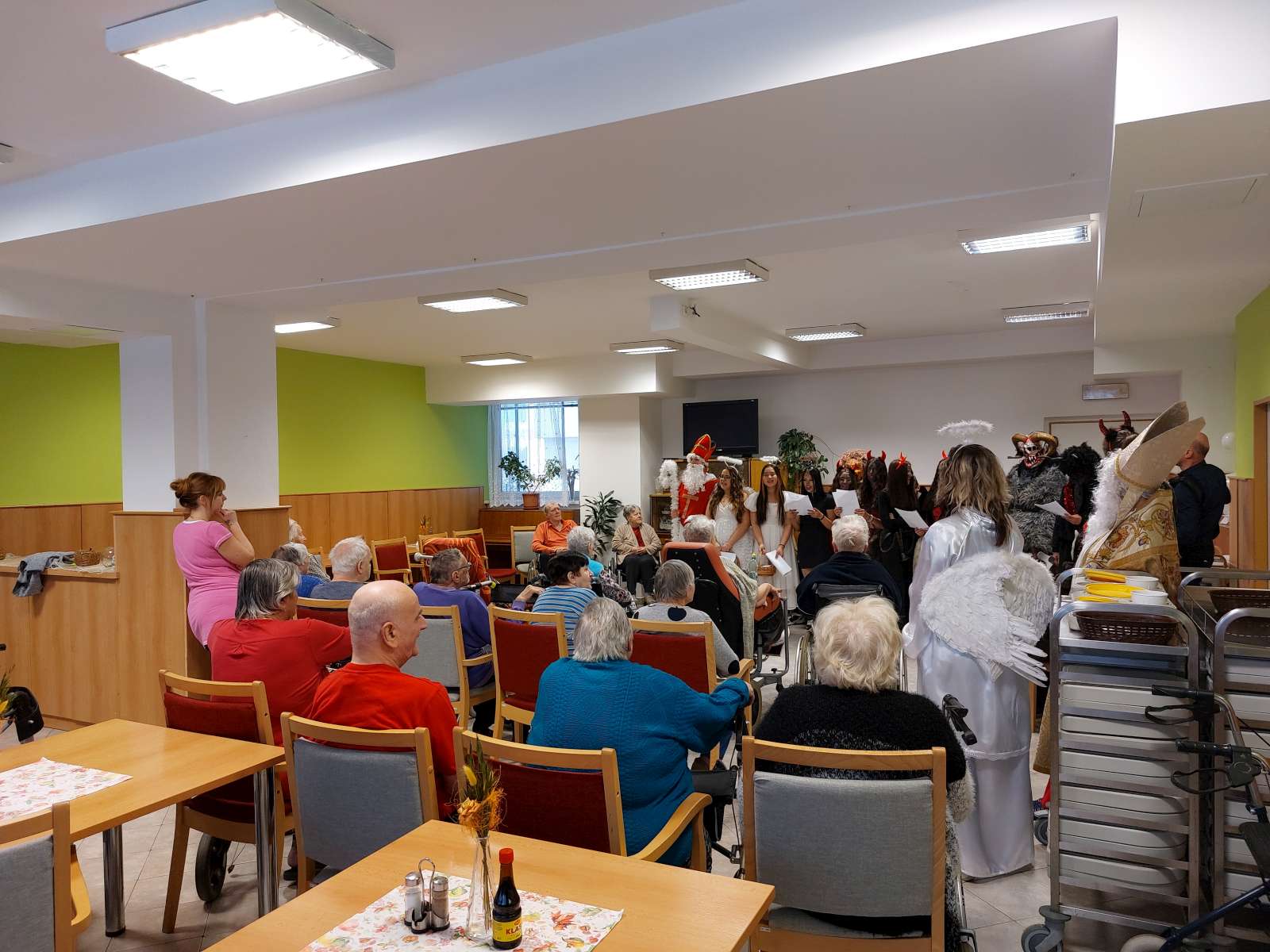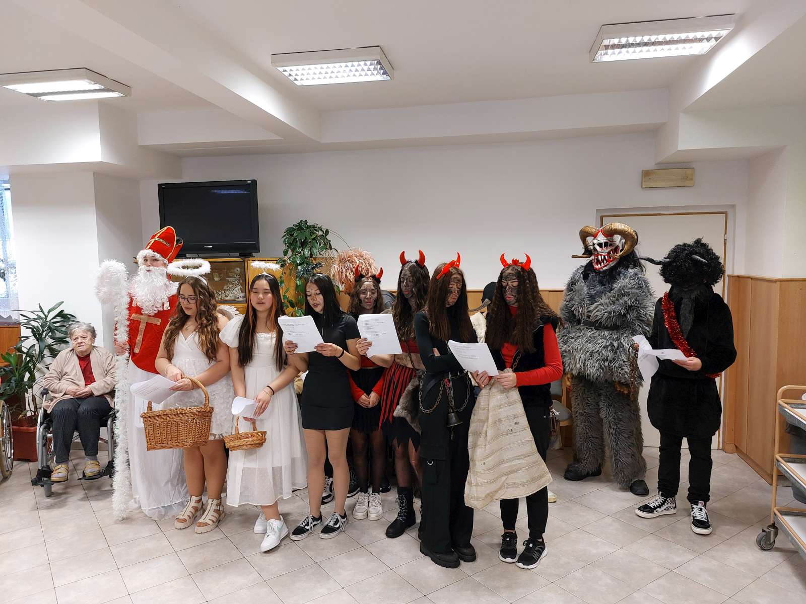 Svatý Mikuláš k nám do Domova zavítal 5.12.2023. Přišel v doprovodu čertů a andělů z místní základní školy. Za hudebního doprovodu pana učitele Baslera nám všichni zazpívali vánoční koledy. A kromě klasické mikulášské nadílky nás čekalo ještě jedno milé překvapení - jedna šikovná "andělka" společně se svou maminkou doma napekla a nazdobila plný koš perníčků, kterými všechny naše klienty obdarovala, za což jí ještě jednou moc děkujeme.
