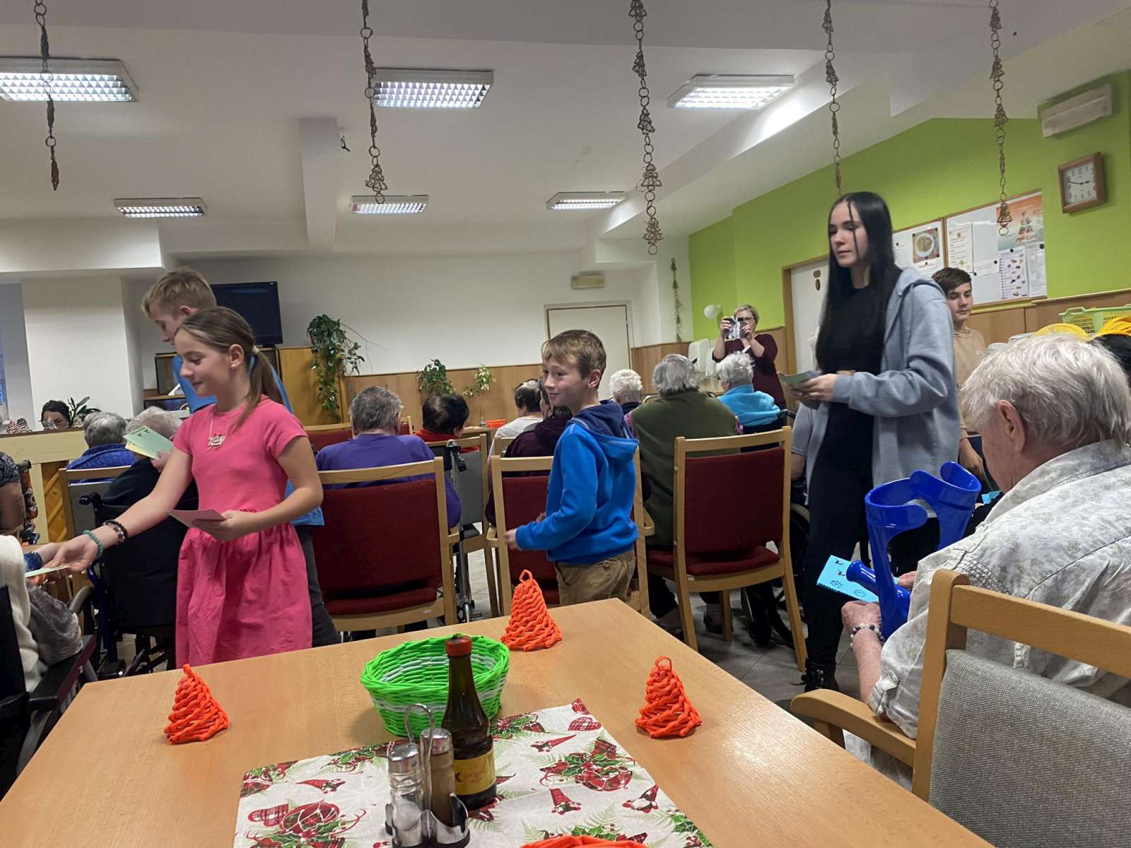 Ve středu 13.12.2023 nám přišly děti z Dětského domova Štíty společně se svou "tetou" Luckou K. předvést své Vánoční vystoupení. Měly moc pěkně připravený program - zpívaly koledy, recitovaly básničky, každý nám řekl své osobní vánoční přání a navíc všem našim klientům předaly ručně vyráběné dárečky.