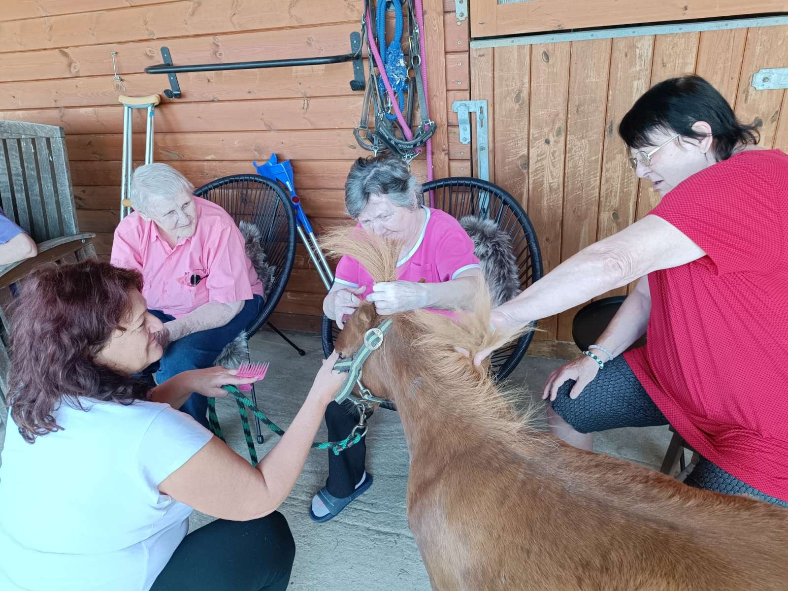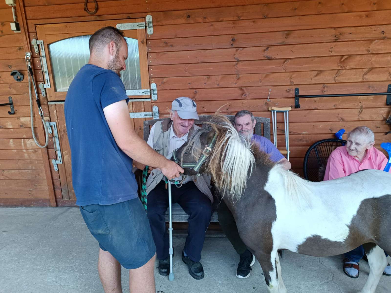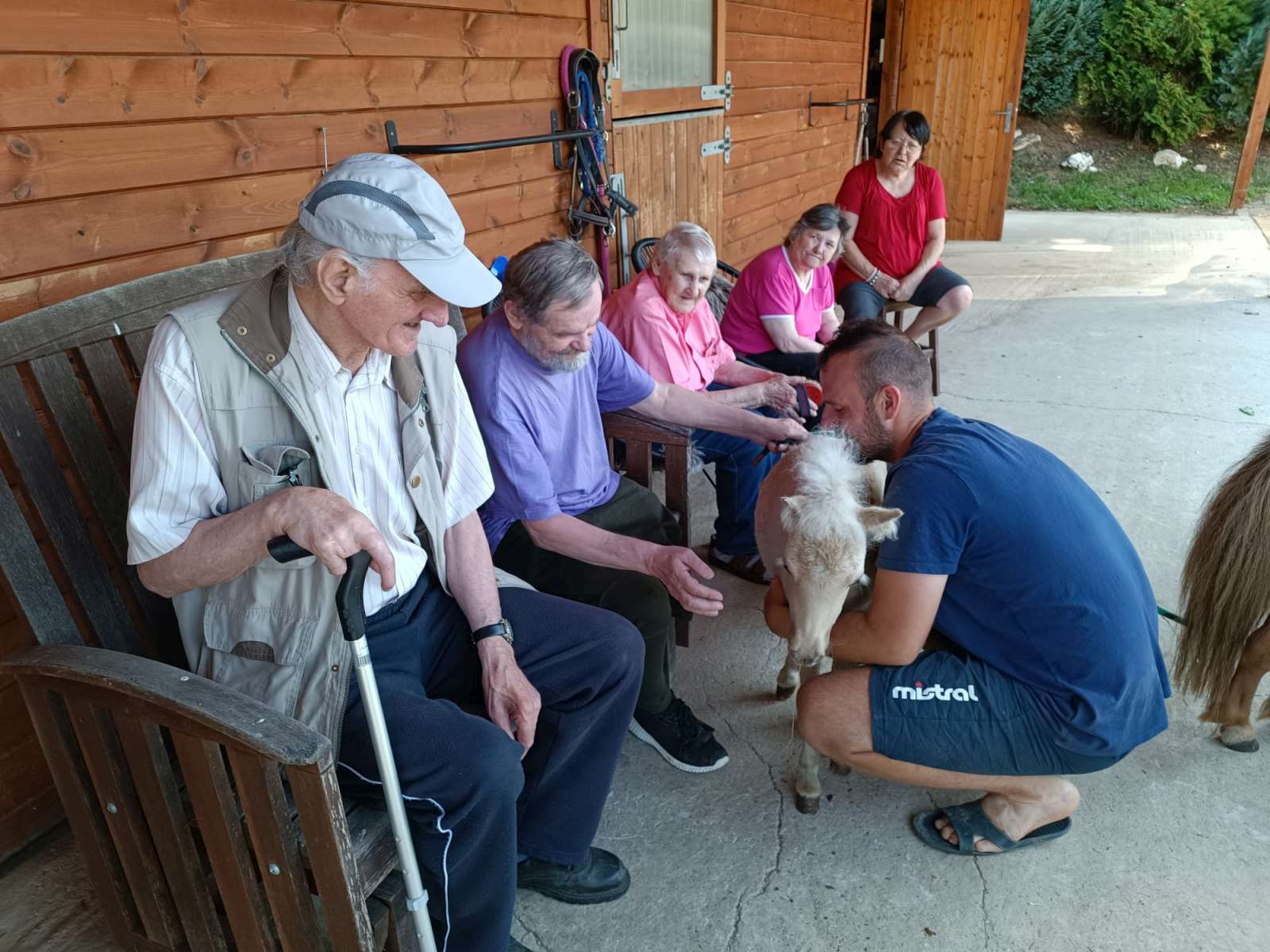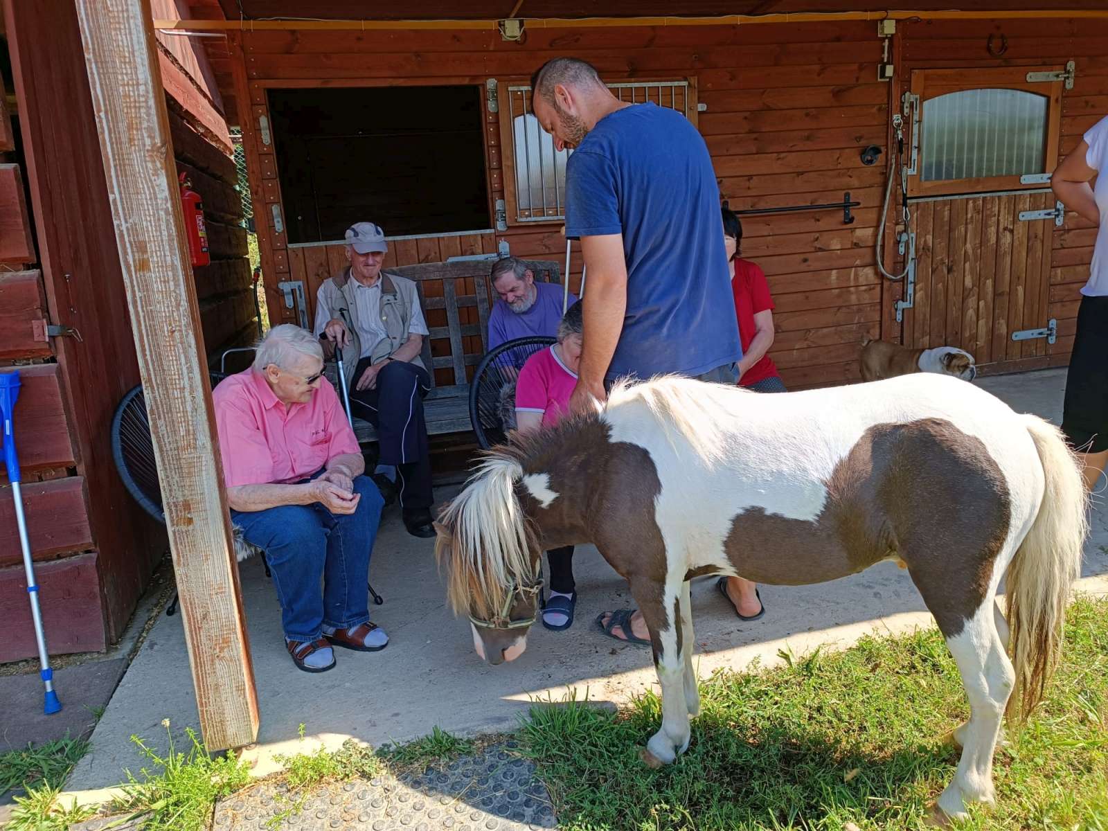 V polovině srpna jsme s klienty jeli navštívit našeho canisterapeuta do obce Mirotínek, kde nám ukázal své "hospodářství". Chová tady nejen psy, ale i koně, poníky atd.