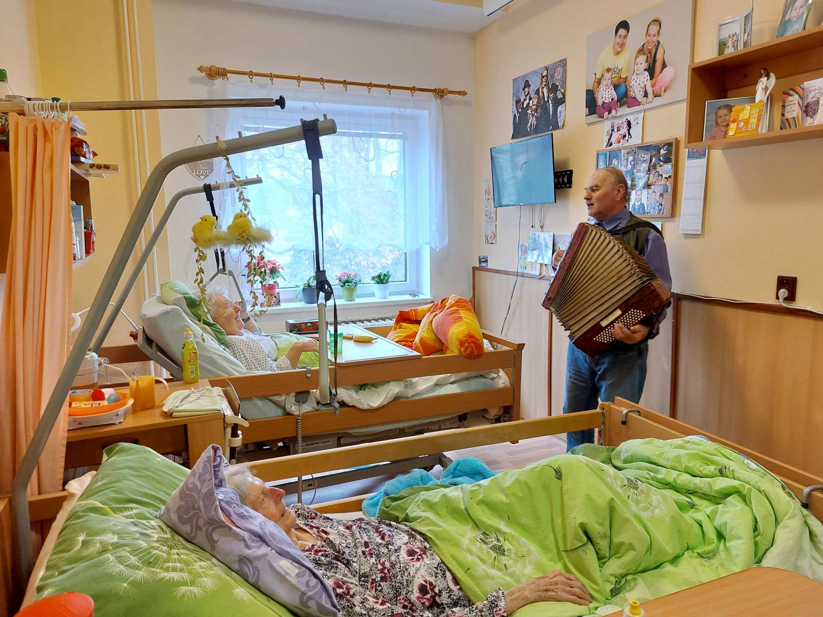 Mezinárodní den žen jsme oslavili přesně 8.3.2024, a to za hudebního doprovodu harmonikáře pana Hanáka. A každá naše klientka dostala k svátku červený karafiát, bez něj by to snad ani nešlo...