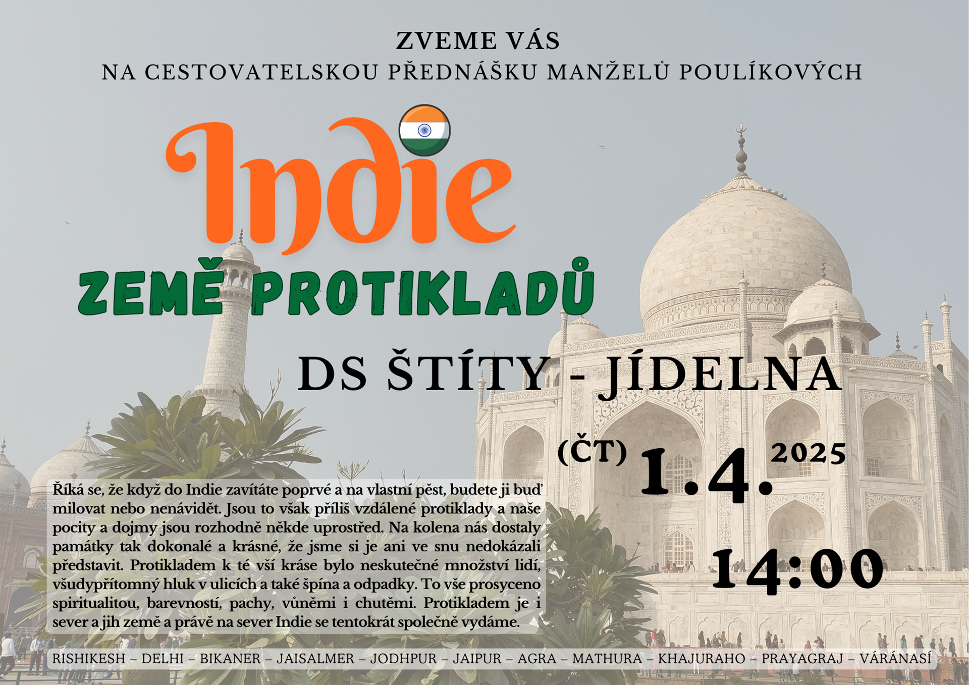 Cestovatelská přednáška Indie - země protikladů