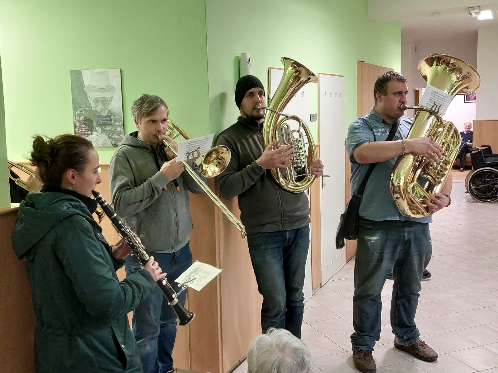 A úplně poslední letošní akcí v celkem pestrém vánočním programu byly vánoční koledy v podání trubačů – navštívili náš Domov večer 18.12.2025 a jejich návštěvu zaregistrovali úplně všichni, i ti, kteří se již chystali ke spánku, protože jejich dechové hudební nástroje se určitě nedaly přeslechnout.